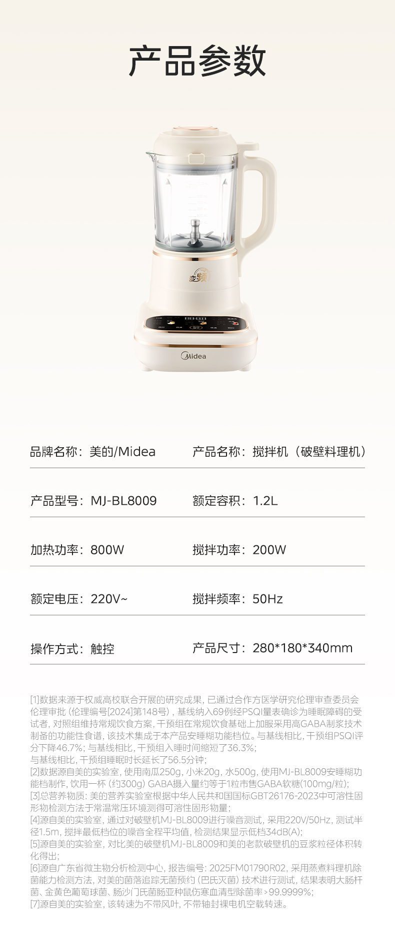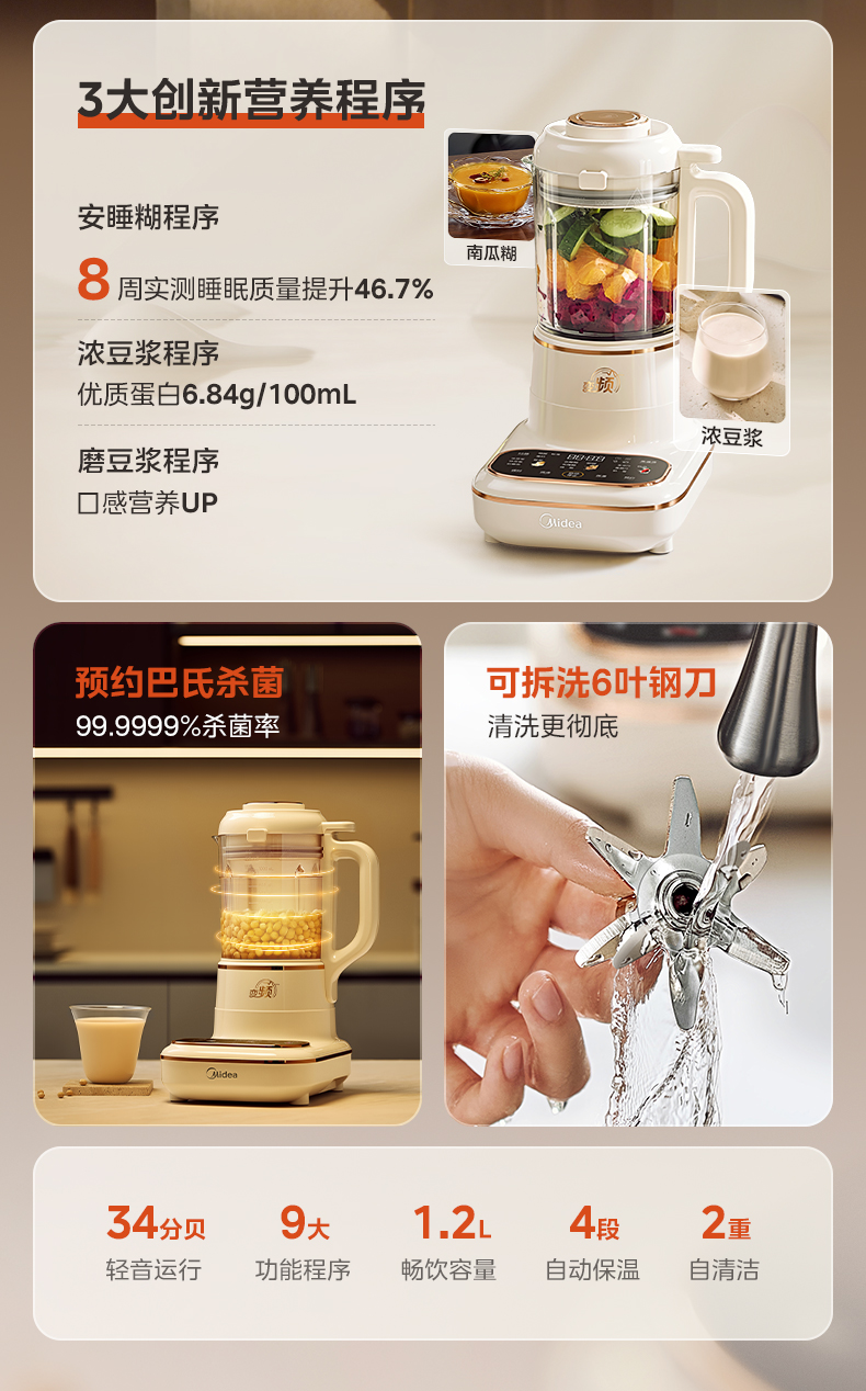 美的(Midea) 破壁机 MJ-BL8009 1.2L 杏色(单位:台)