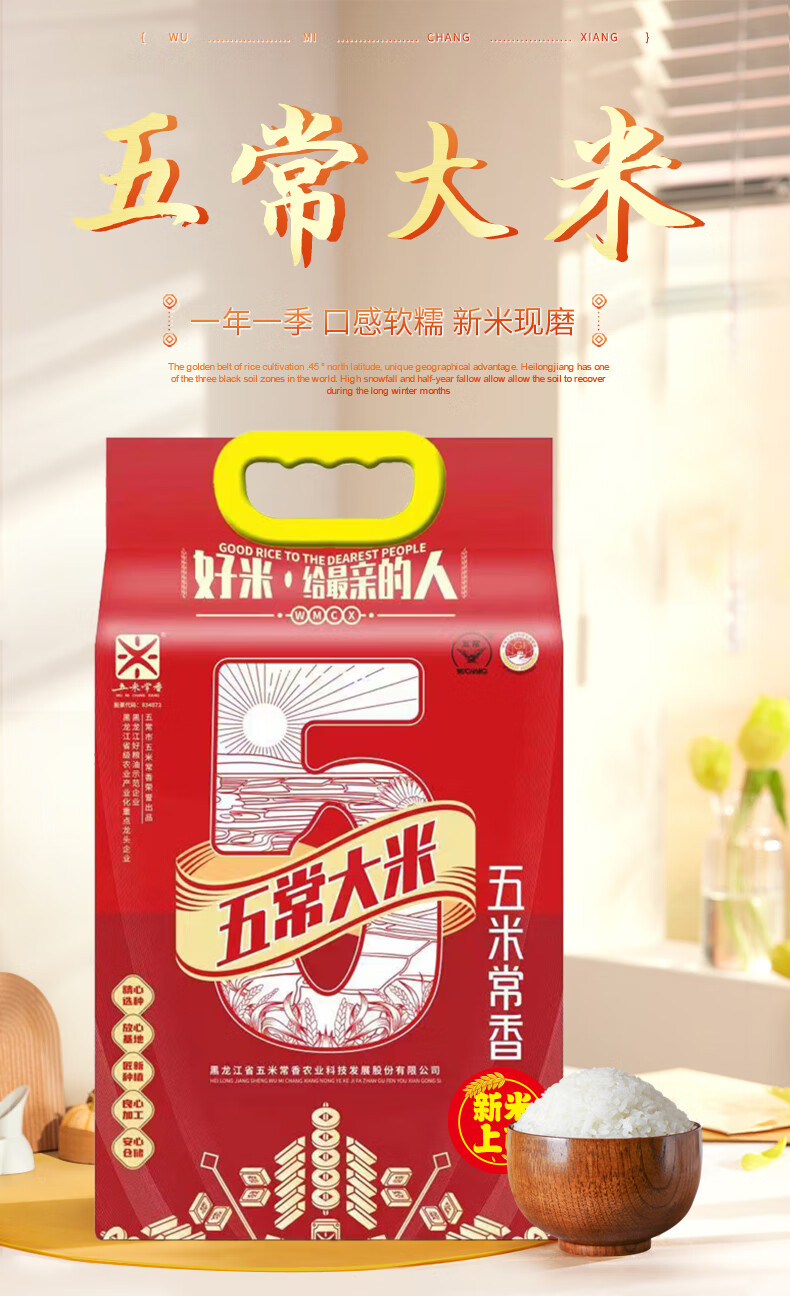 五米常香(WUMICHANGXIANG) 五常大米当季新米 红色真空包装 5kg*1袋 红色(单位:袋)