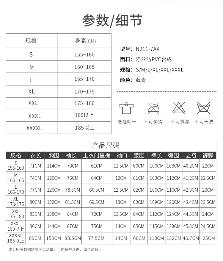 天堂 雨衣雨裤套装全身防水分体成人 N211-7AX】 N211-7AX XXXXL码 藏青(单位:套)