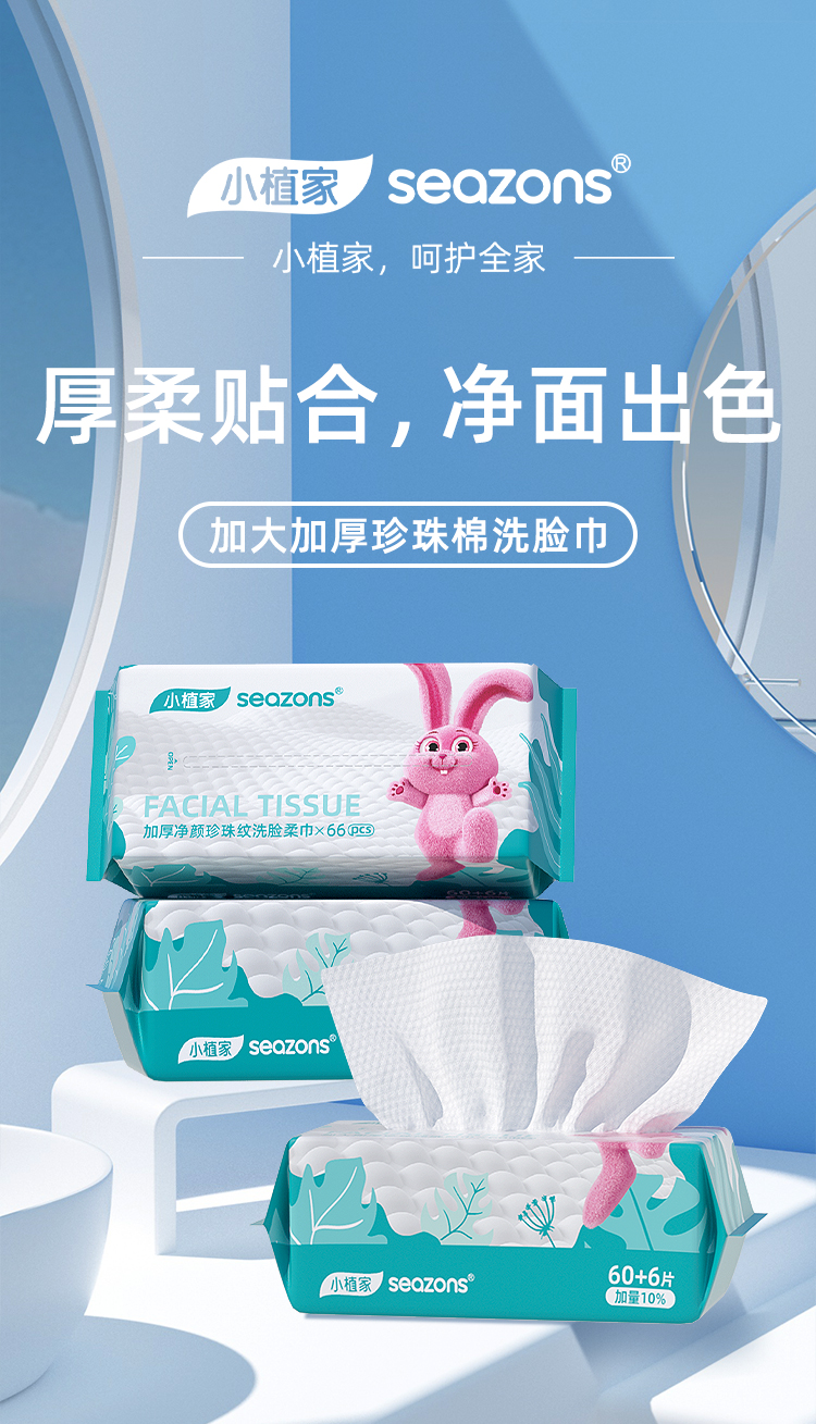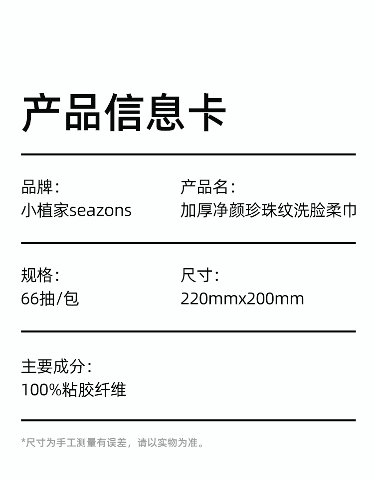 小植家 洗脸巾 BX066A*3包组 66片/包*3包 白色(单位:包)