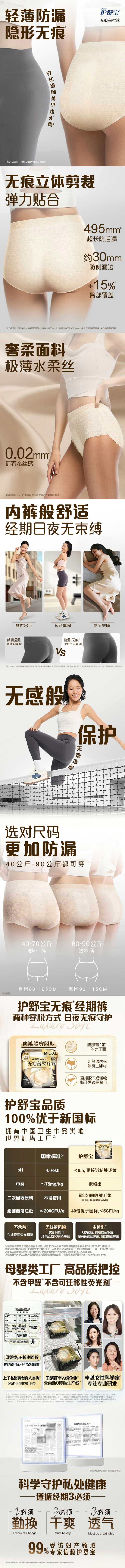 护舒宝(ALWAYS) 无痕奢柔M-L码裤型卫生巾 安睡裤 2+1条 金色(单位:包)