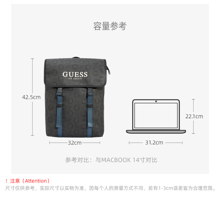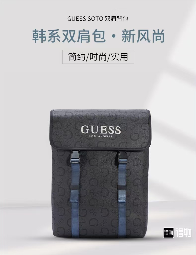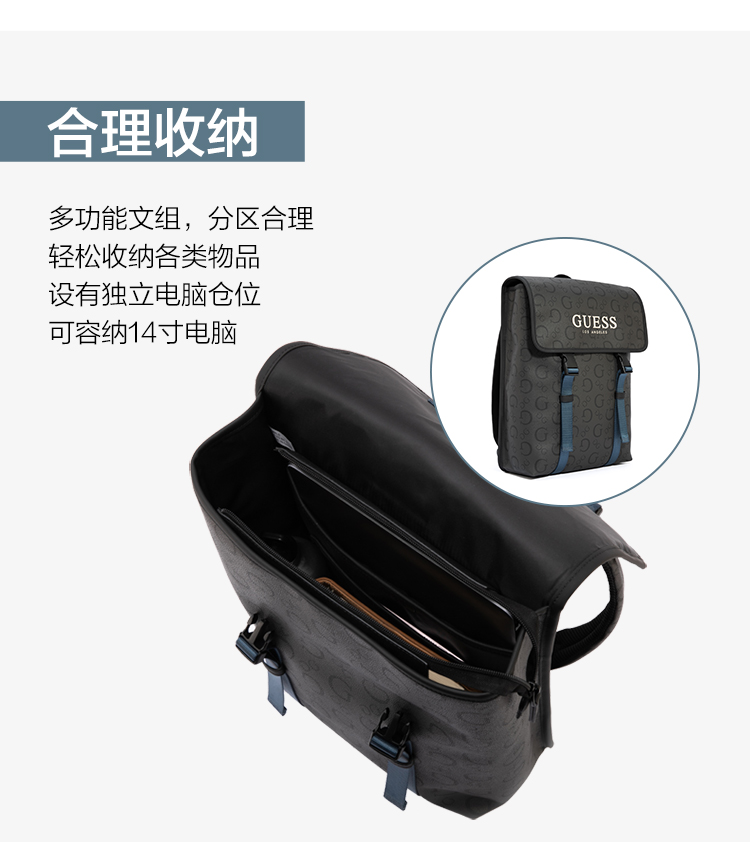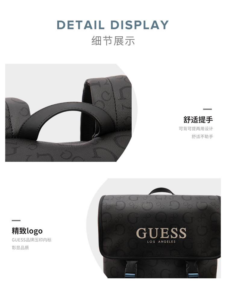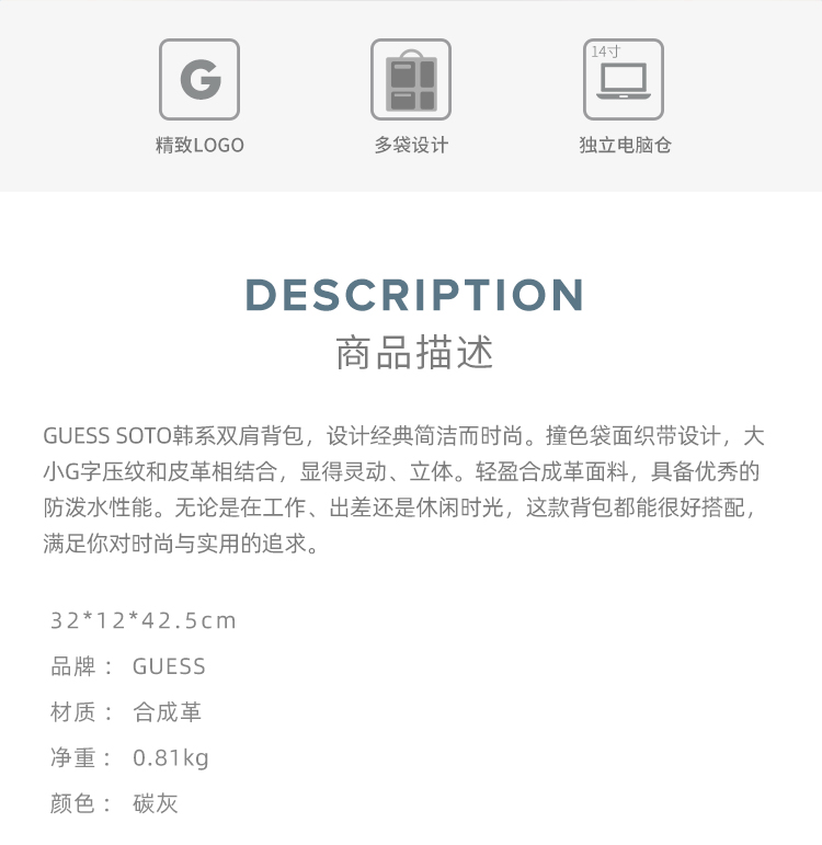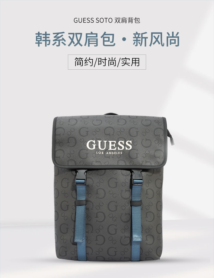 盖尔斯/GUESS SOTO时尚双肩背包 12.9L 1个 GSBCO908998CBU 尺寸:320*425*120 mm, 净重:0.715KG 碳灰(单位:个)