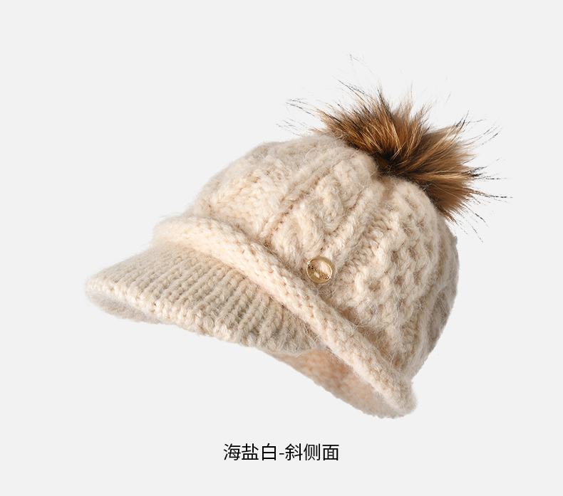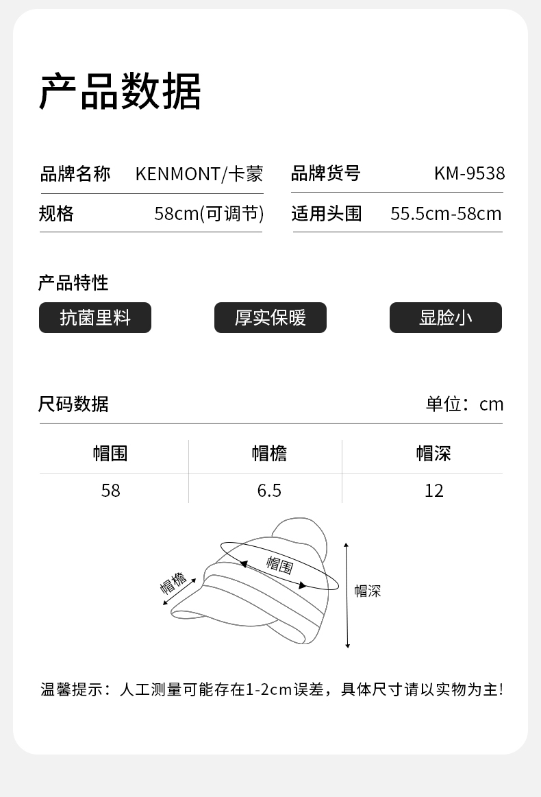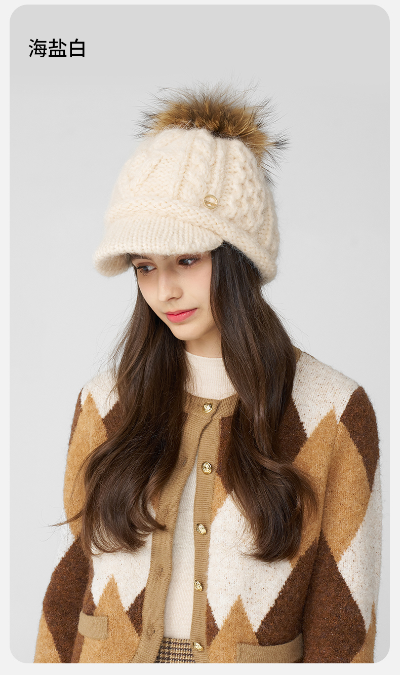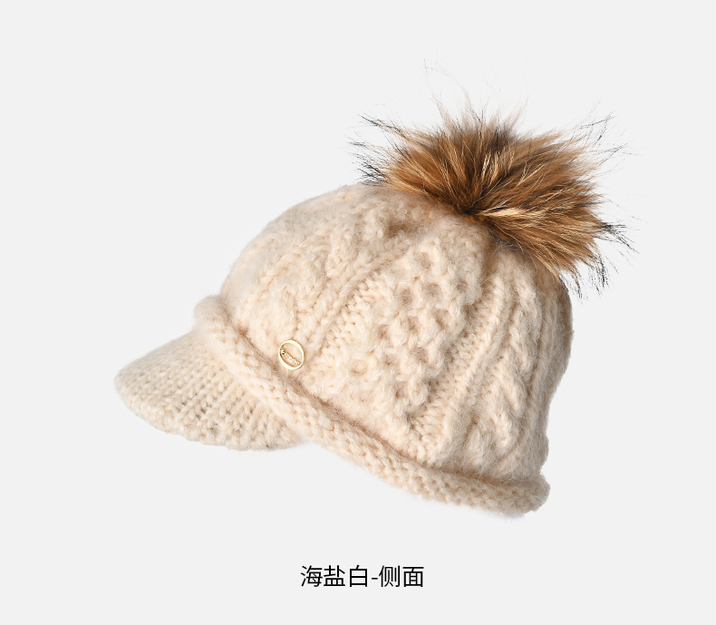 卡蒙(Kenmont) 貉子毛球粗毛线绞花针织贝雷帽 KM-9538-013 适用头围(55.5-58cm) 海盐白(单位:顶)