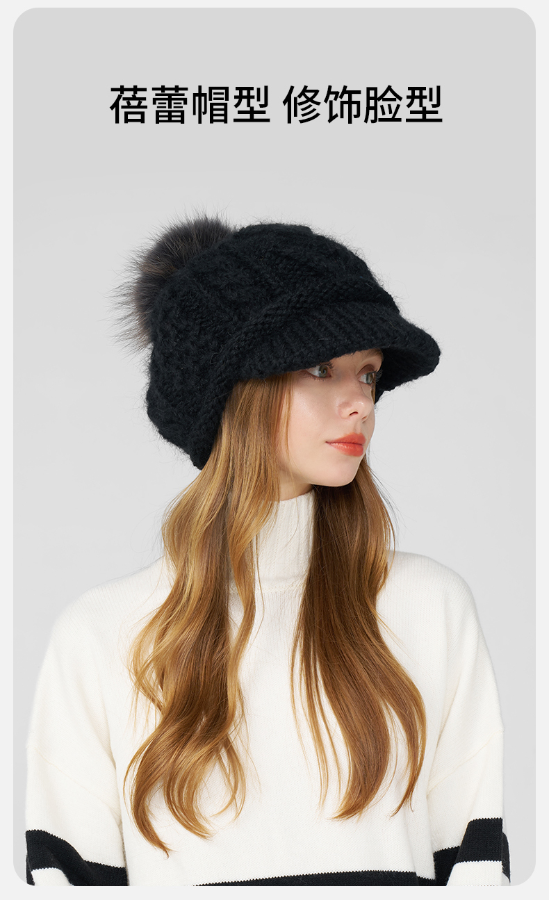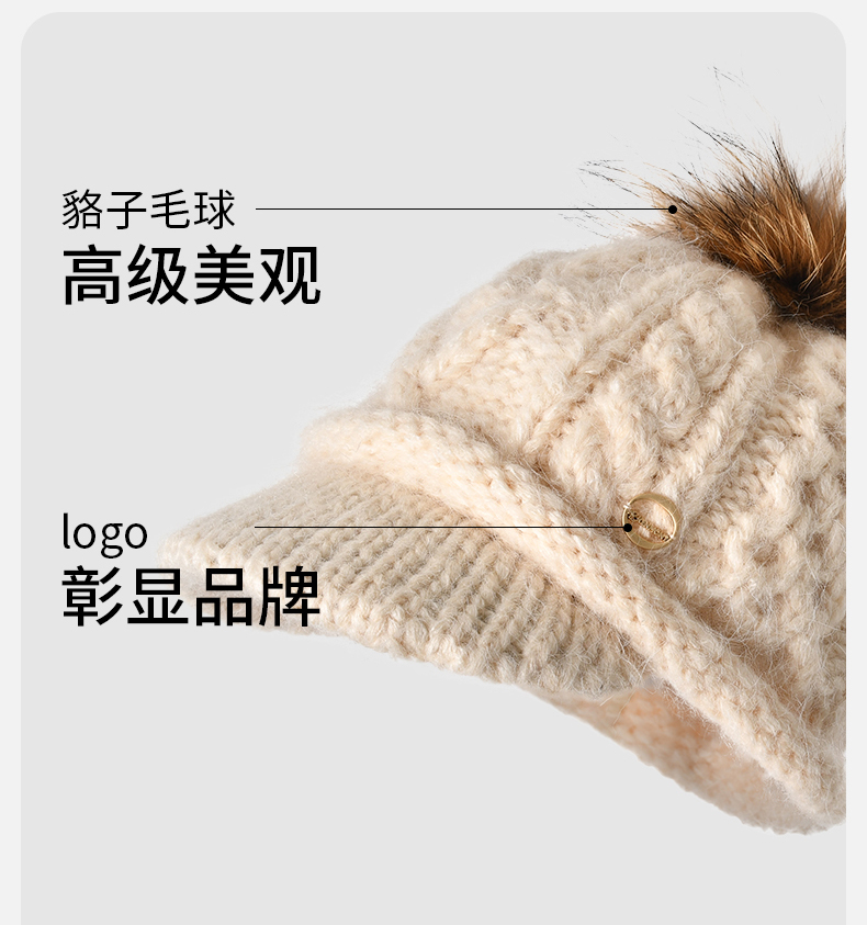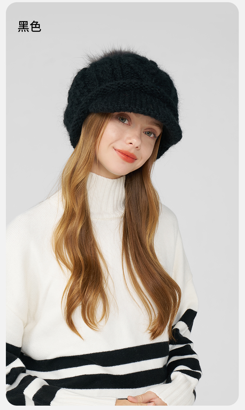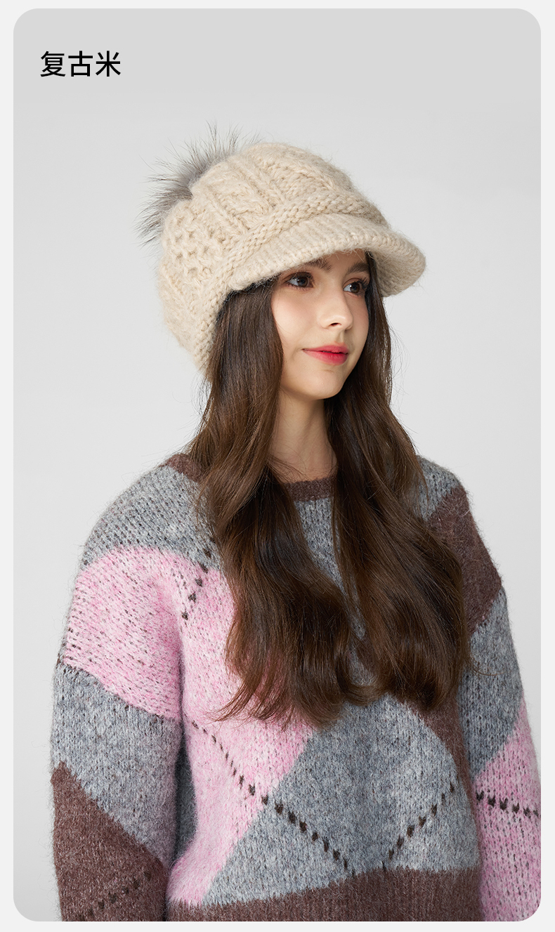 卡蒙(Kenmont) 貉子毛球粗毛线绞花针织贝雷帽 KM-9538-013 适用头围(55.5-58cm) 海盐白(单位:顶)