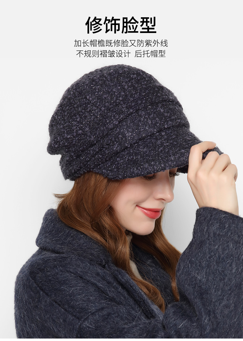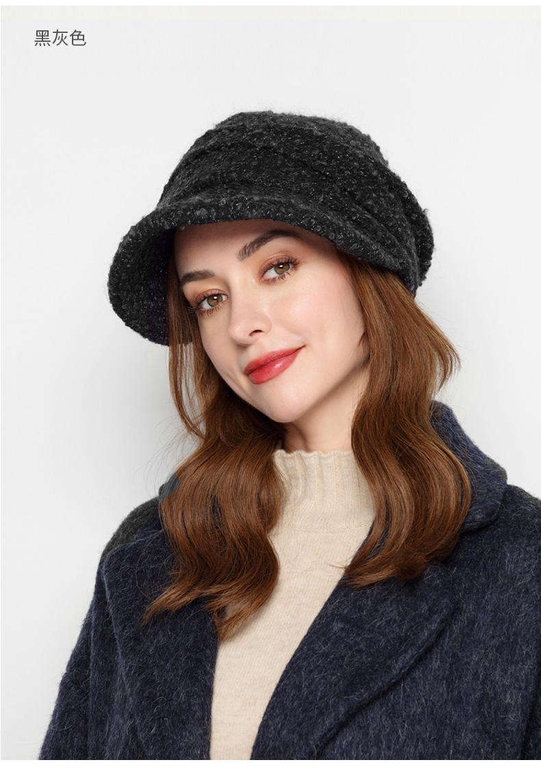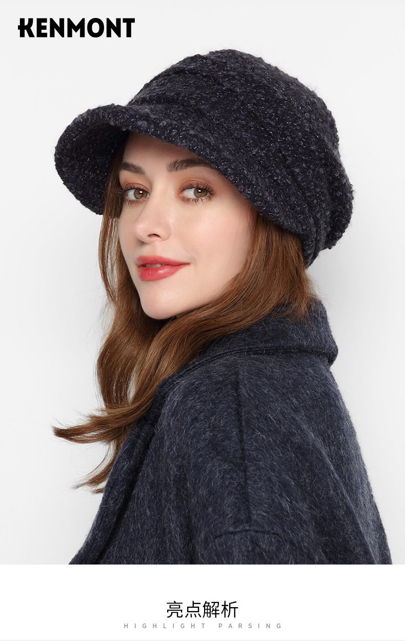 卡蒙(Kenmont) 羊毛呢鸭舌贝雷帽 KM-5133-69 57.5cm(可调节) 黑灰色(单位:顶)