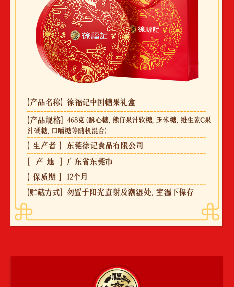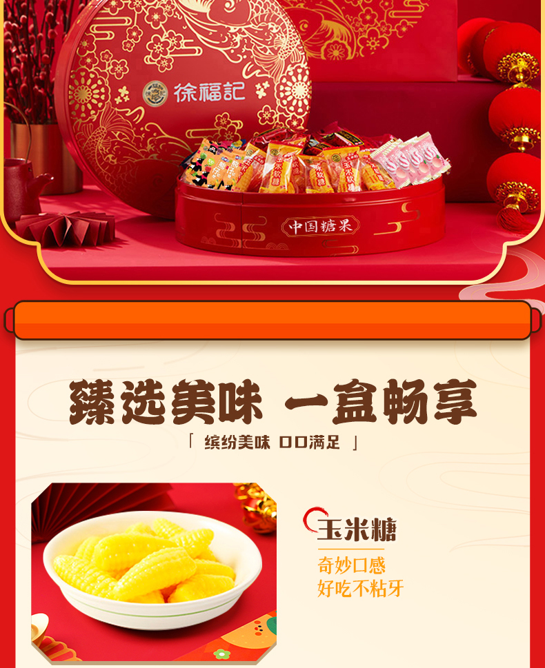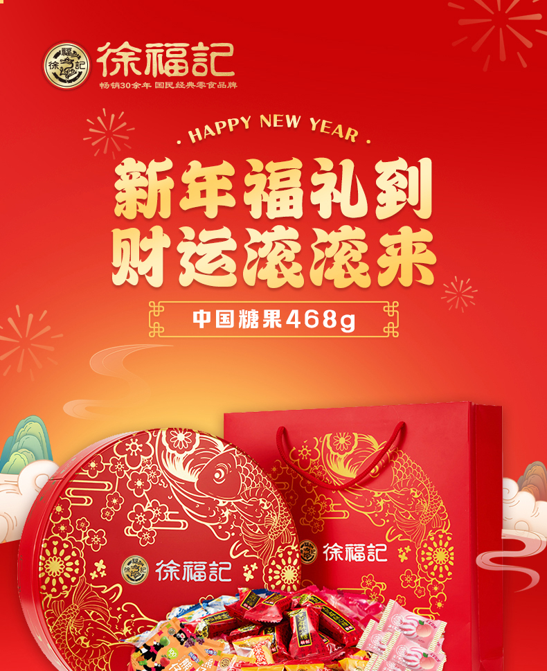 徐福记 铁盒礼盒 中国糖果 468g 红色(单位:盒)