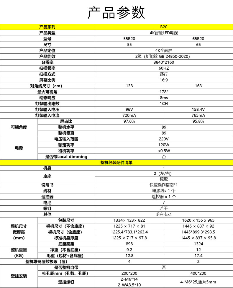 创维 电视机 65B20 65英寸 黑色(单位:台)