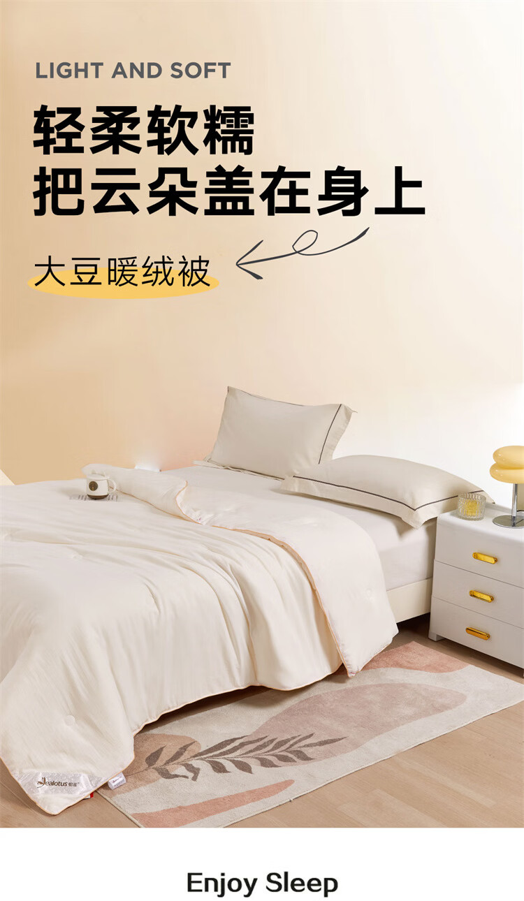 怡莲(YEALOTUS) 大豆暖绒被 YL-231-2 150*200cm, 填充净重:500克 白色(单位:床)