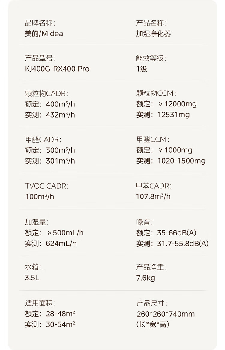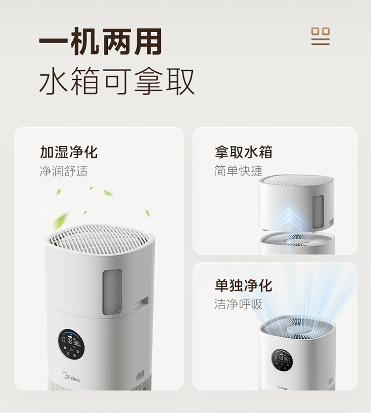美的(Midea) 加湿净化器 KJ400G-RX400 Pro 3.5L水箱 白色(单位:台)