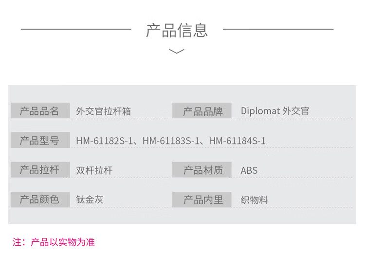 Diplomat 时尚拉杆箱 HM-61184S-1 28英寸 钛金灰(单位:件)