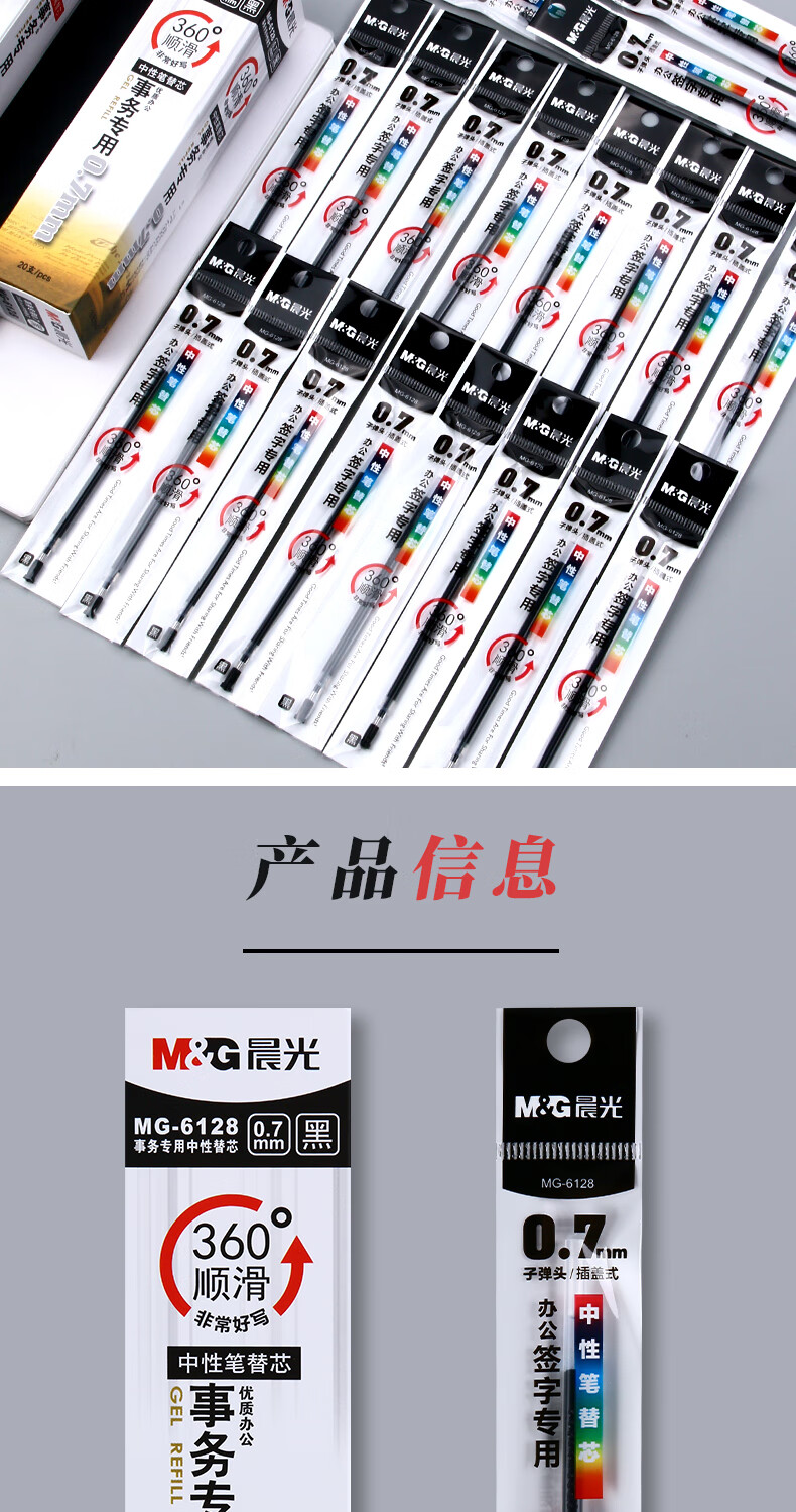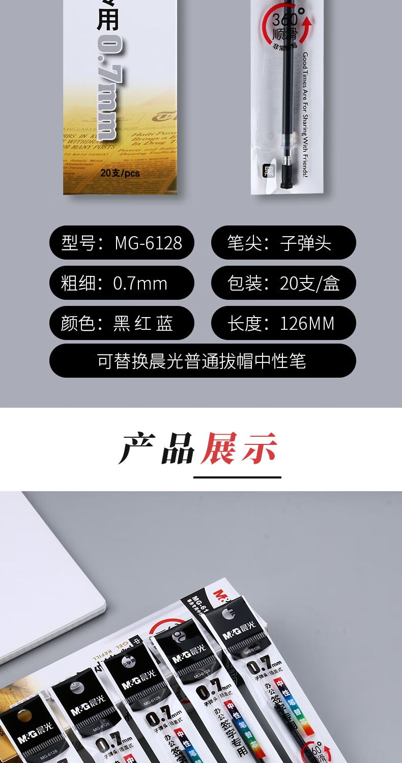 晨光(M&G) 拔盖替芯 MG6128A 0.7mm 20支/盒 黑色(单位:盒)