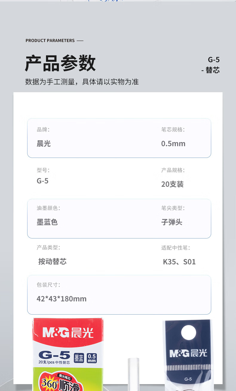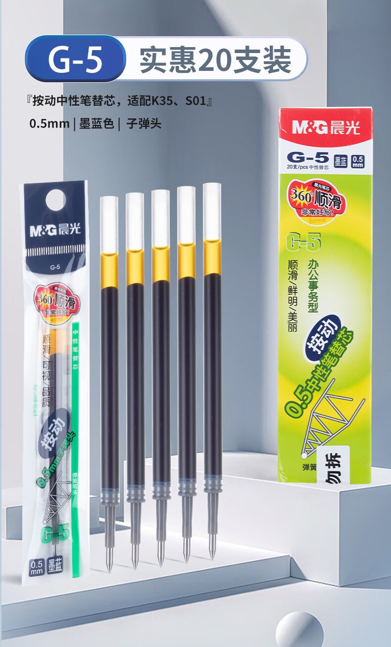 晨光(M&G) 按动替芯 G-5B1 0.5mm 20支/盒 墨蓝色(单位:盒)