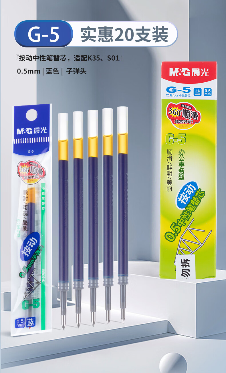 晨光(M&G) 按动替芯 G-5B 0.5mm20支/盒 蓝色(单位:盒)