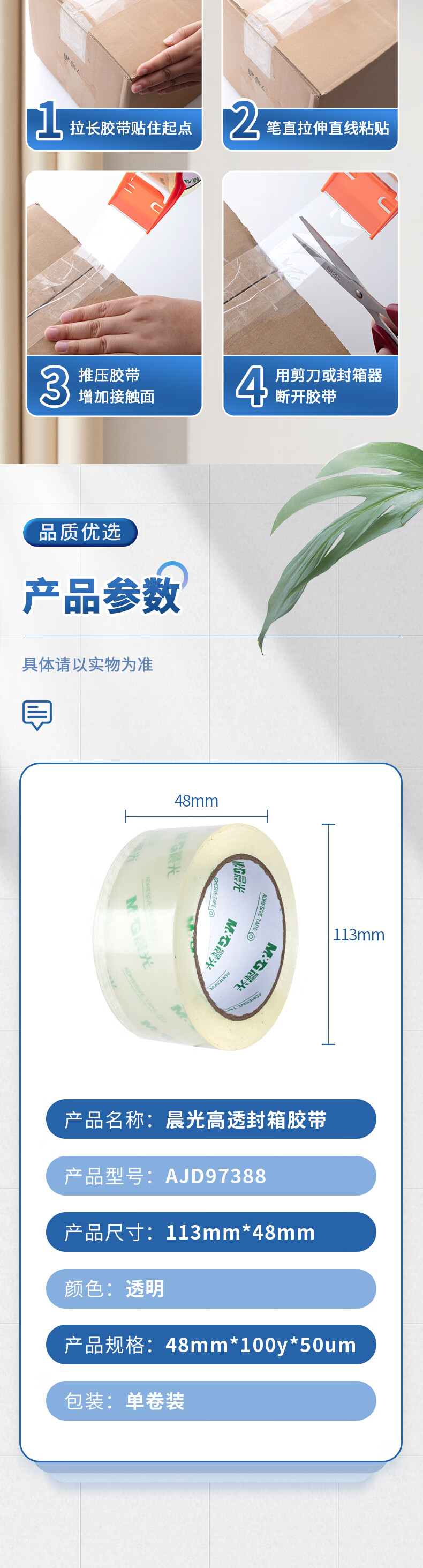 晨光(M&G) 封箱胶带高透 AJD97388 48mm*100y 单卷装 透明(单位:卷)