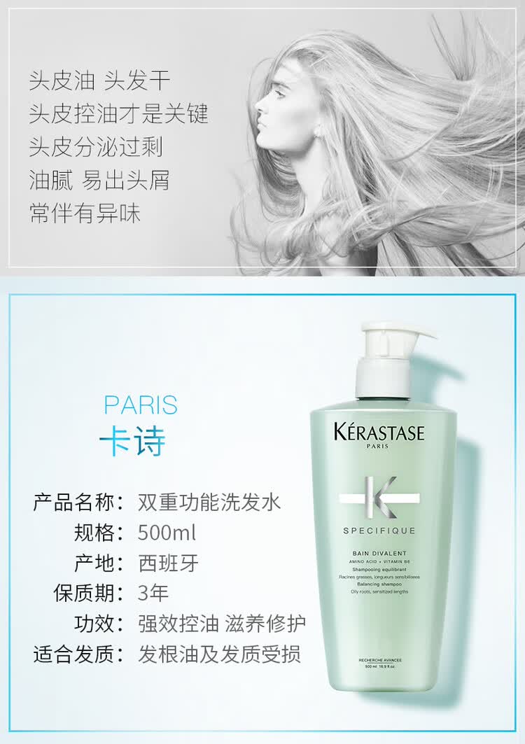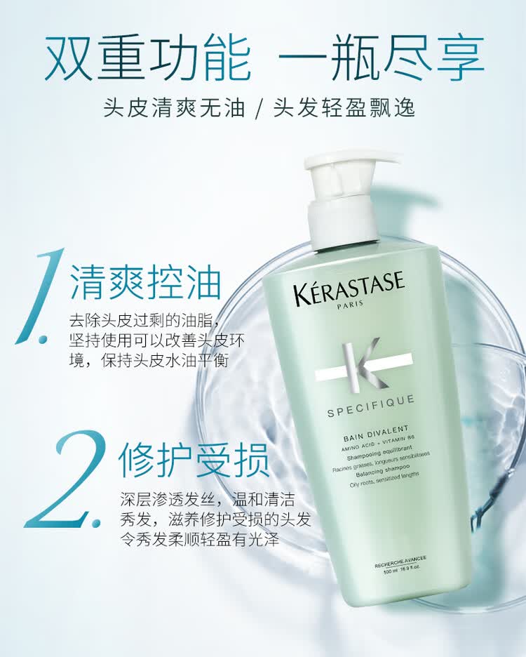 卡诗(KERASTASE) 头皮系列功能洗发水 双重 500ml 绿色(单位:瓶)