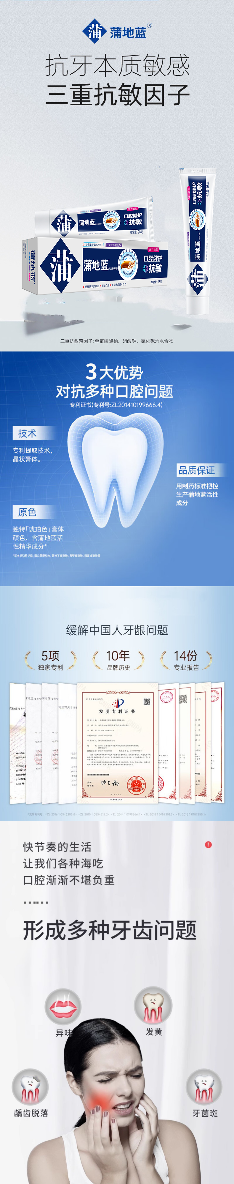 蒲地蓝 蒲地蓝功效型牙膏口腔健护抗敏 留兰香 98g 宝石蓝(单位:支)