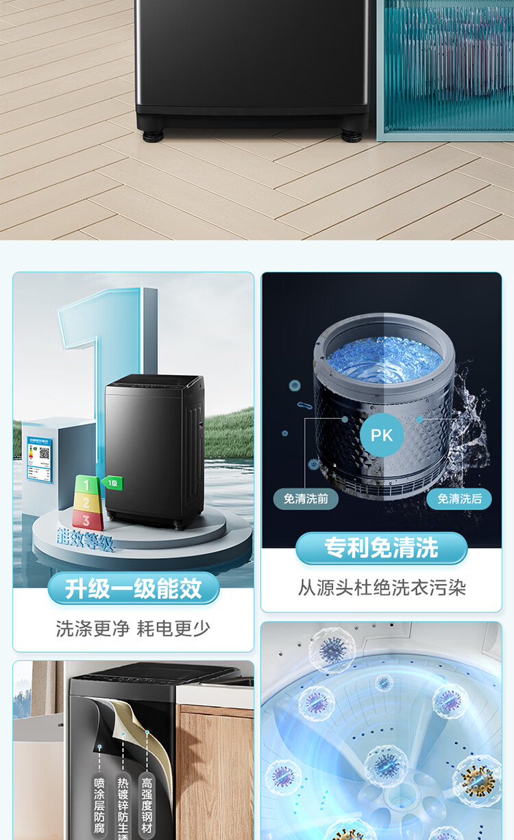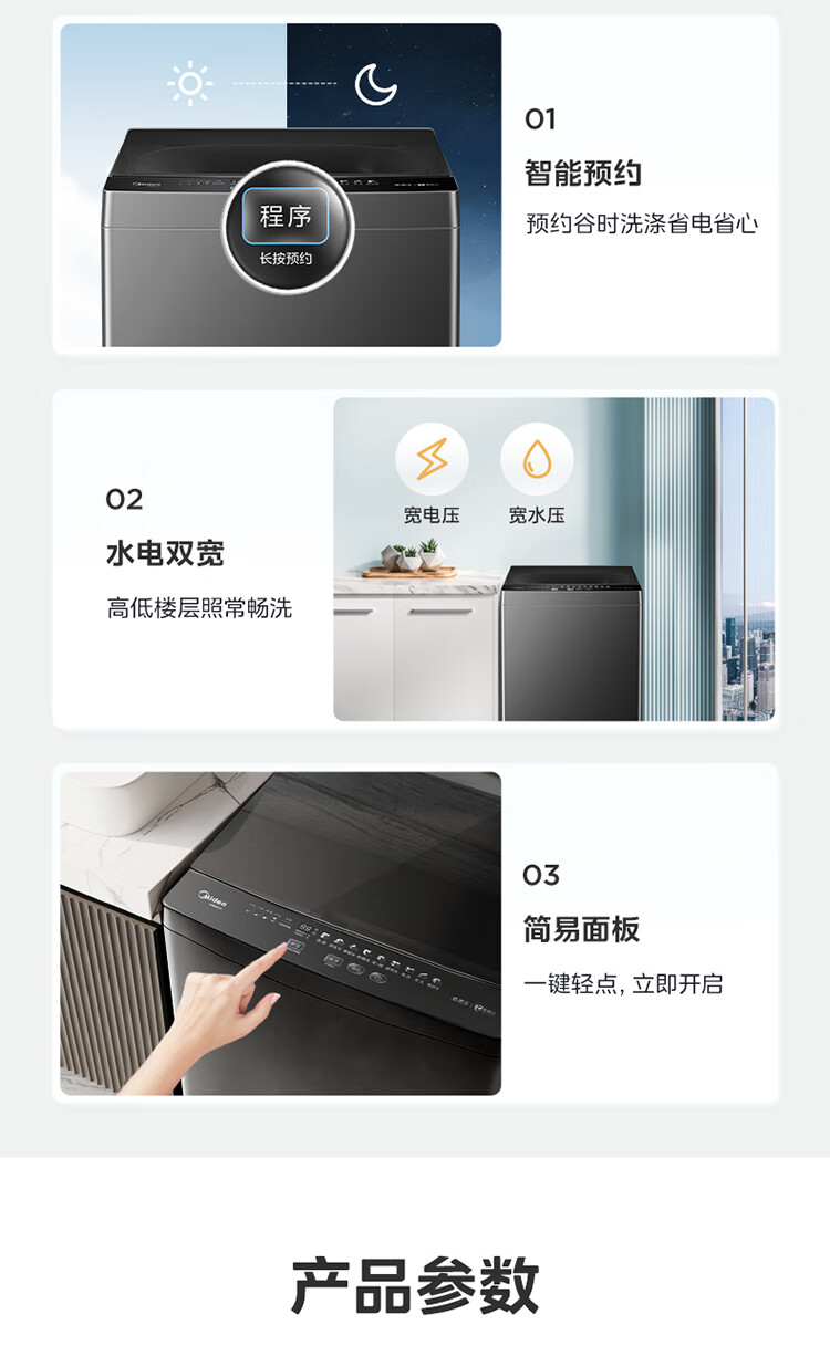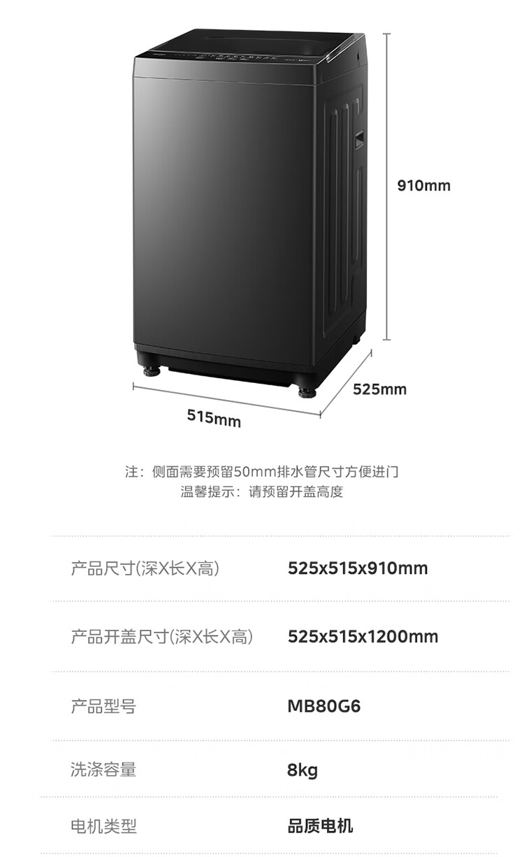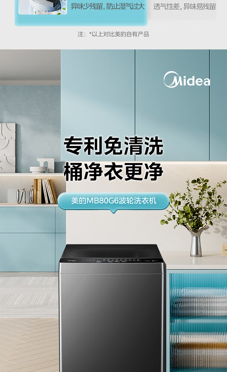 美的(Midea) 波轮洗衣机 MB80G6 8KG 黑色(单位:台)