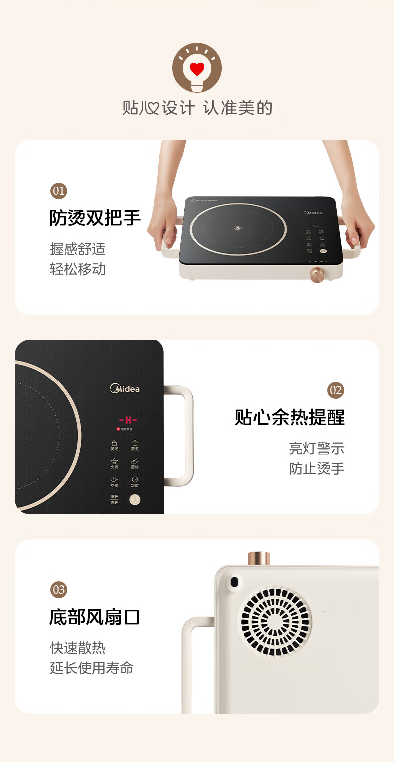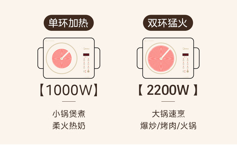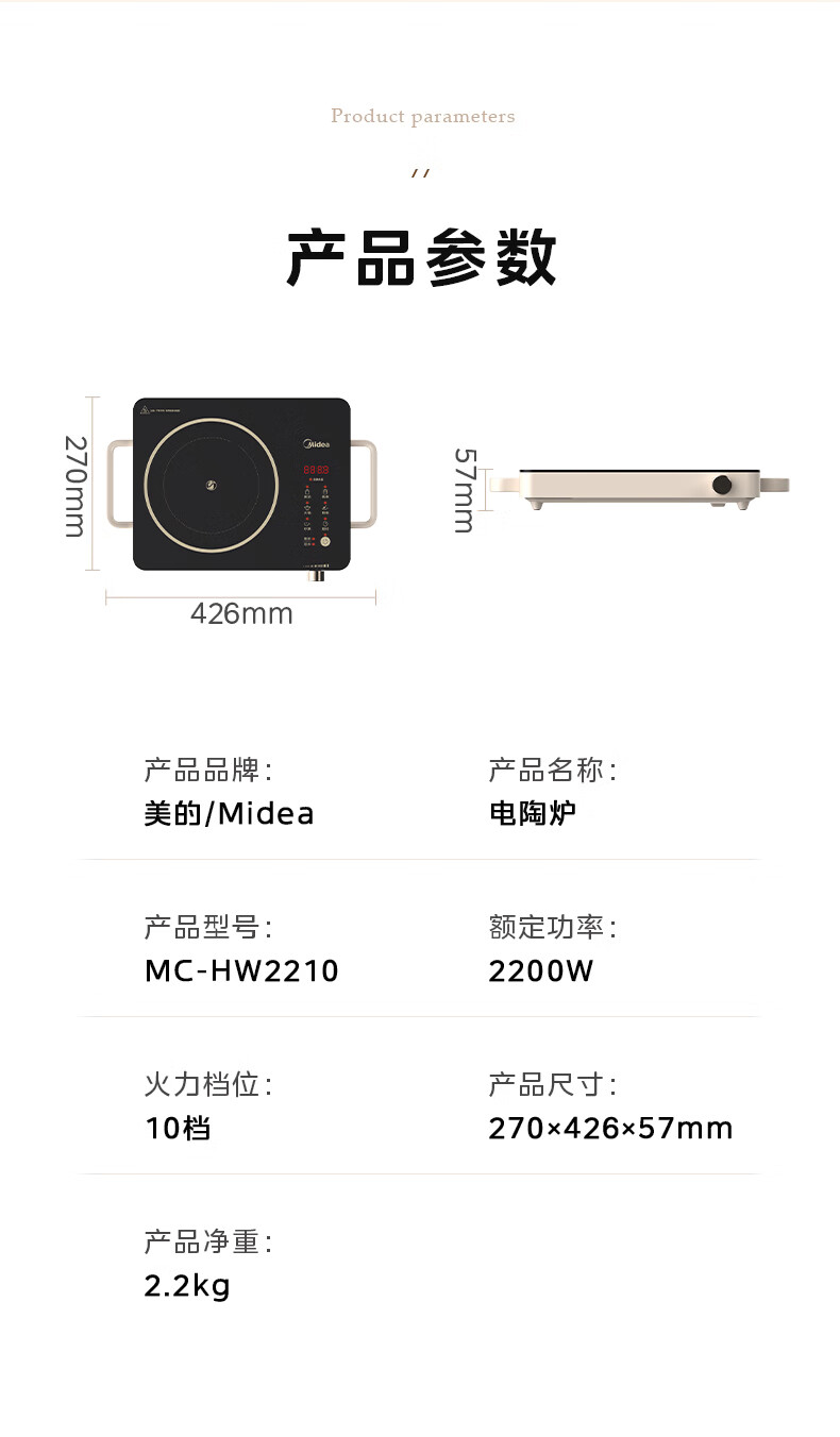 美的(Midea) 电陶炉 MC-HW2210 2200W大火力 灵感白(单位:台)