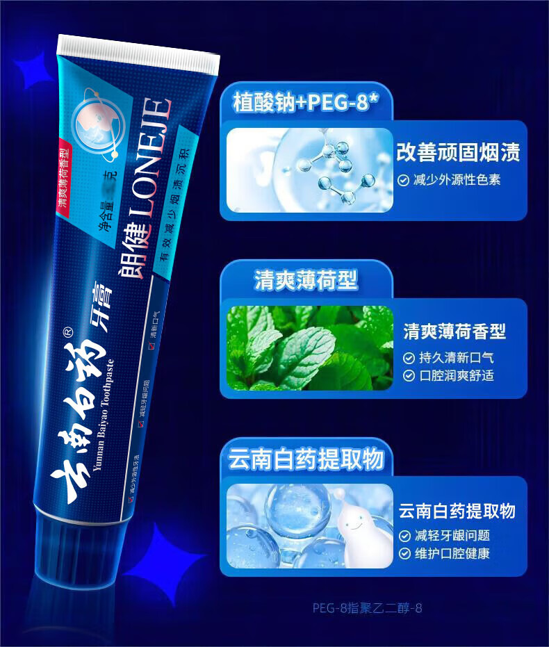 云南白药(YUNNANBAIYAO) 朗健牙膏 清爽薄荷型 120g*1支 混色(单位:支)