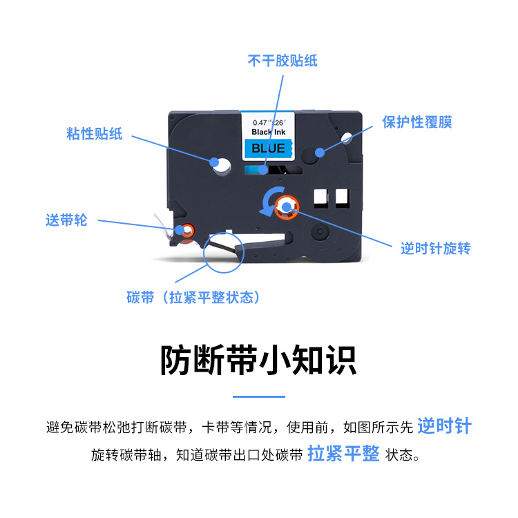 扬帆耐立(YFHC) YFHC-TZ-541 标准版 打印量18mm*8m 适用机型:兄弟BrotherPT-D200 标签色带 标签胶贴 1.00 个/盒 (计价单位:盒) 蓝底黑字