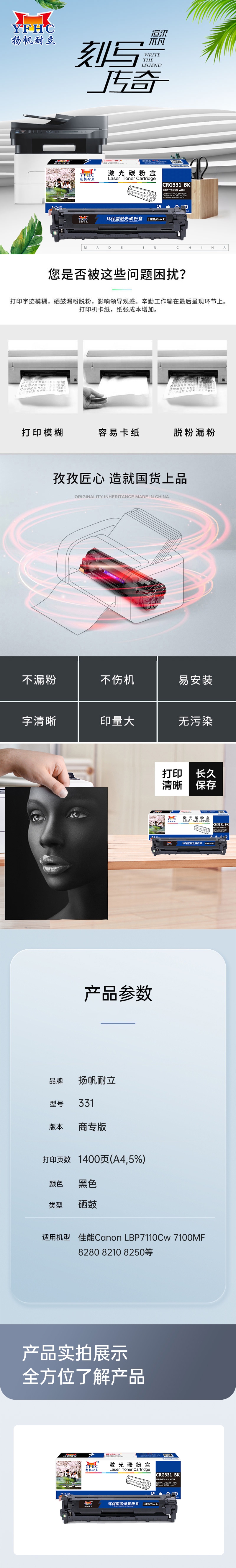 扬帆耐立(YFHC) 331 双支装 商专版 4800页 适用佳能LBP7110 硒鼓 2.00 只/组 (计价单位:组) 黑色 黑色