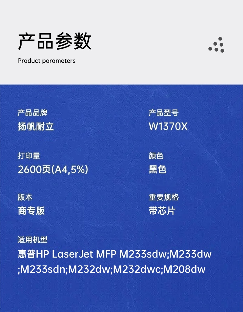 扬帆耐立(YFHC) W1370X 2600页 适用惠普HP M233sdw M233dw M233sdn M232dw M232dwc M208dw 硒鼓 商专版 带芯片 (计价单位:只) 黑色