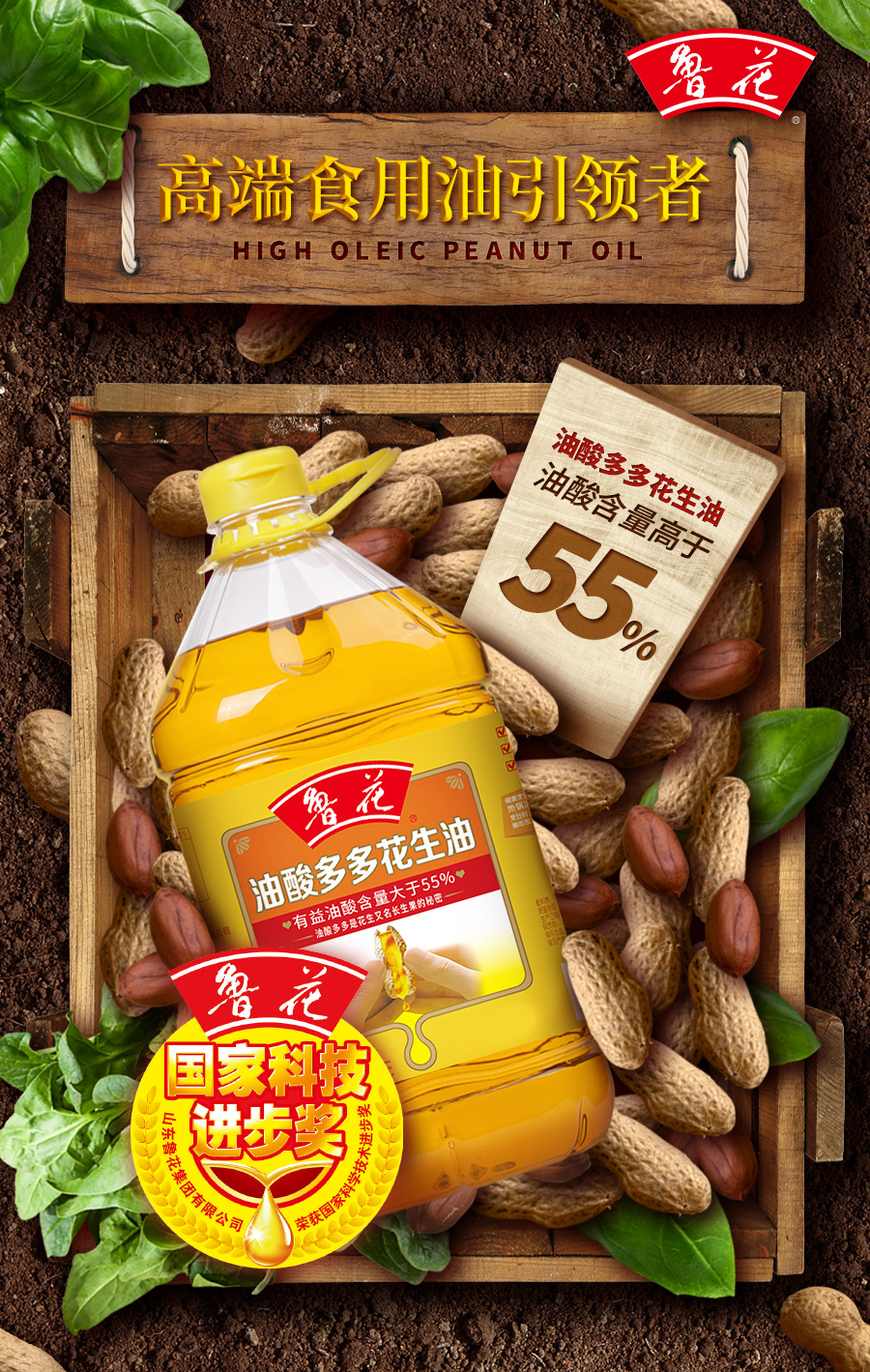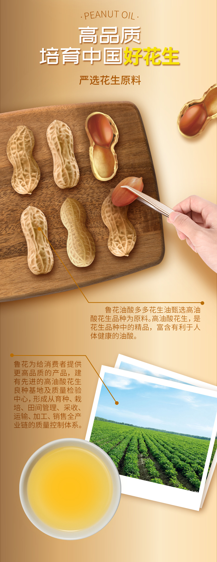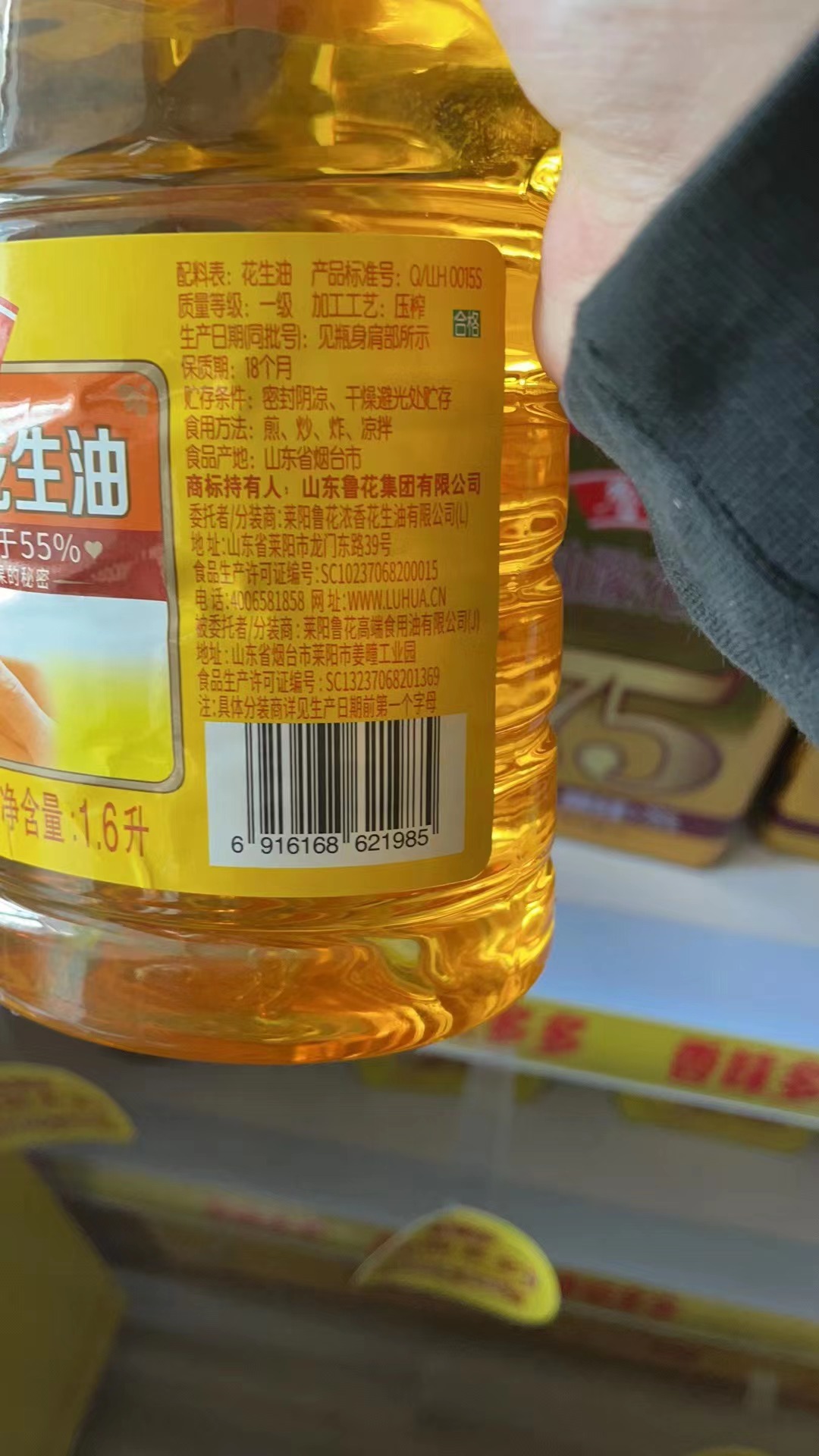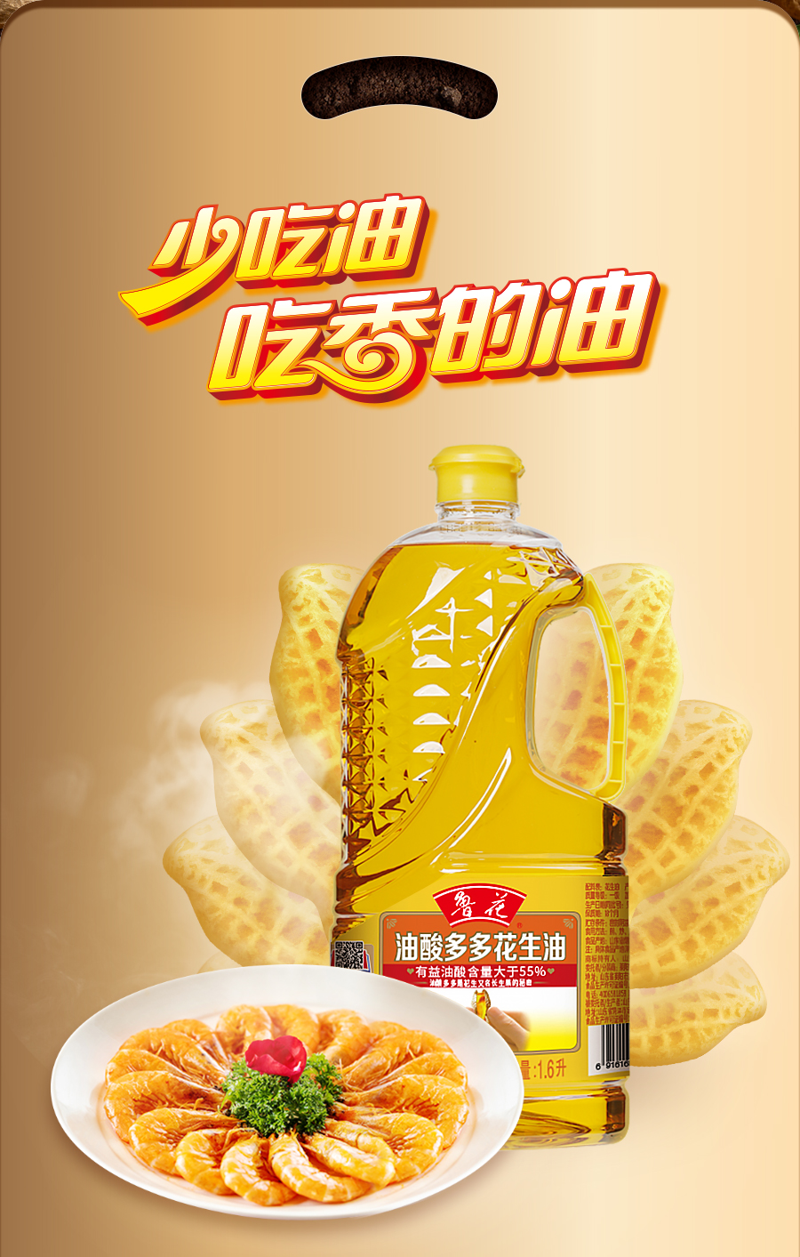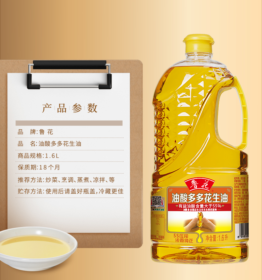 鲁花 食用油 油酸多多 5S压榨一级浓香花生油1.6L 单位:瓶 香槟黄