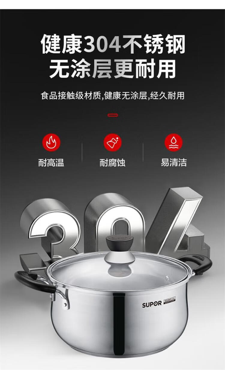 苏泊尔(SUPOR) 好帮手不锈钢复底汤锅 ST20H3 20CM 不锈钢色(单位:个)