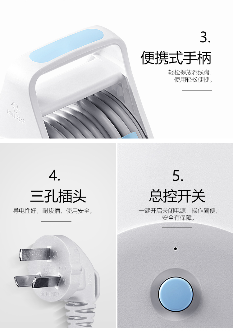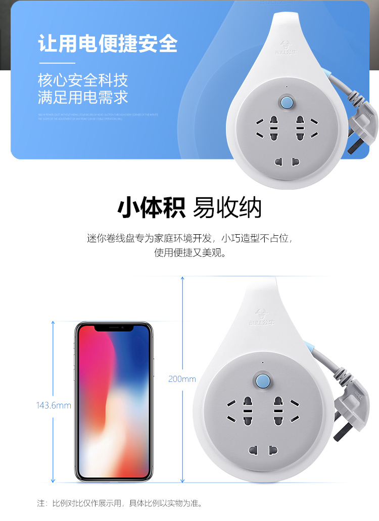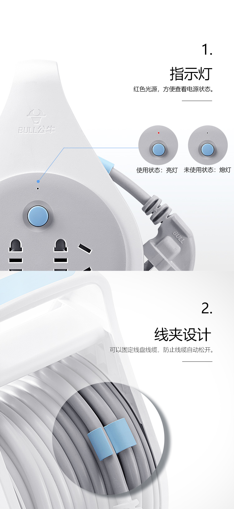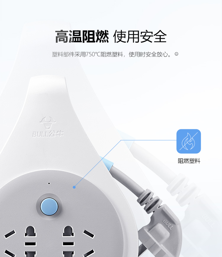 公牛(BULL)新升级工程接线盘/工程卷线盘/过热保护电缆卷盘插座/插排 工程专用 3位10米 GN-802 个 白色