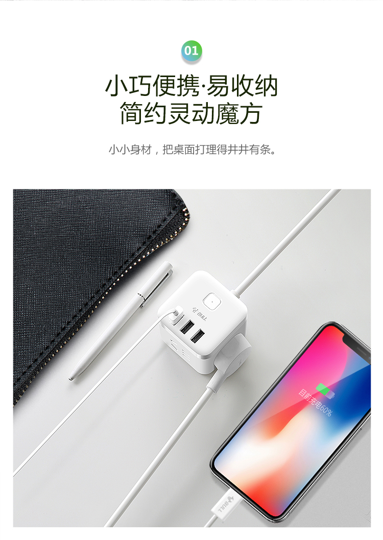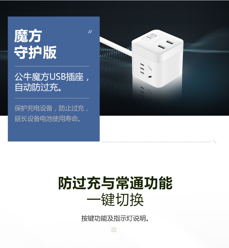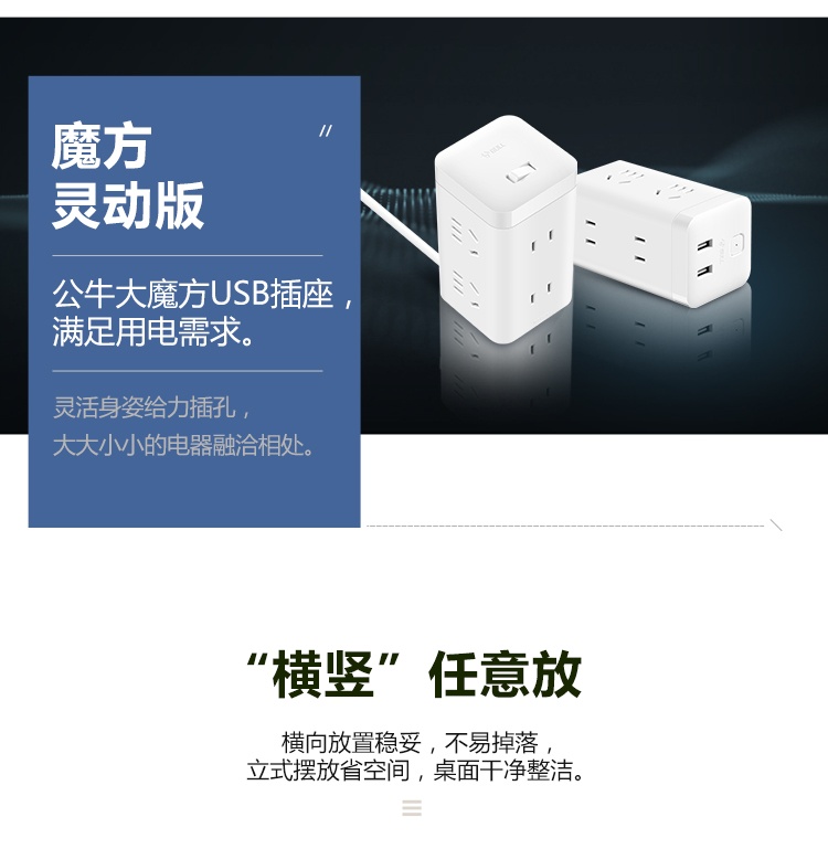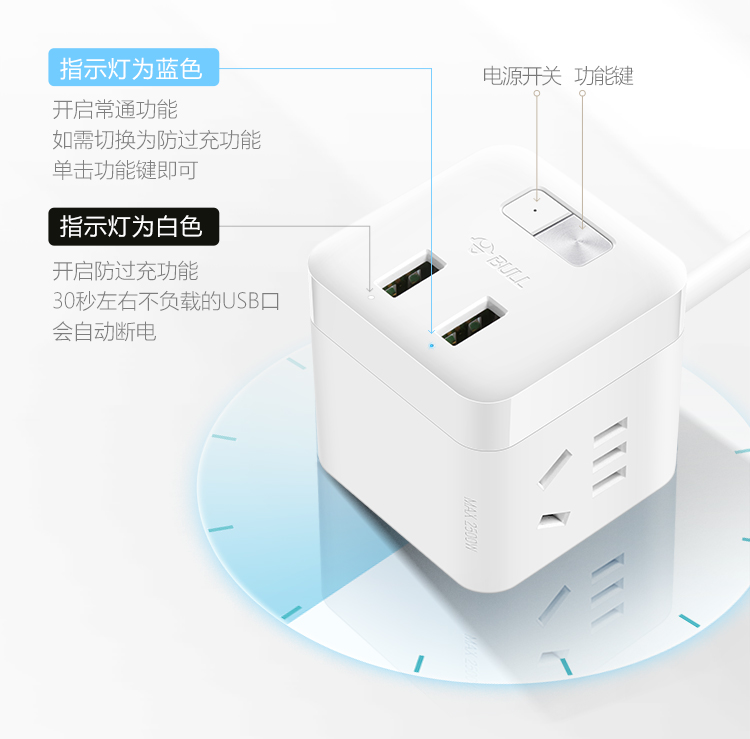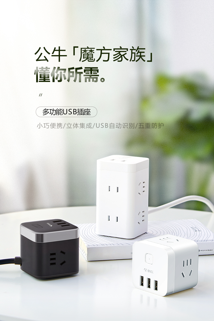 公牛(BULL) GN-U303U 魔方USB插座 插线板/插排/排插/接线板/拖线板 3USB接口+3插孔全长 3米 个 白色