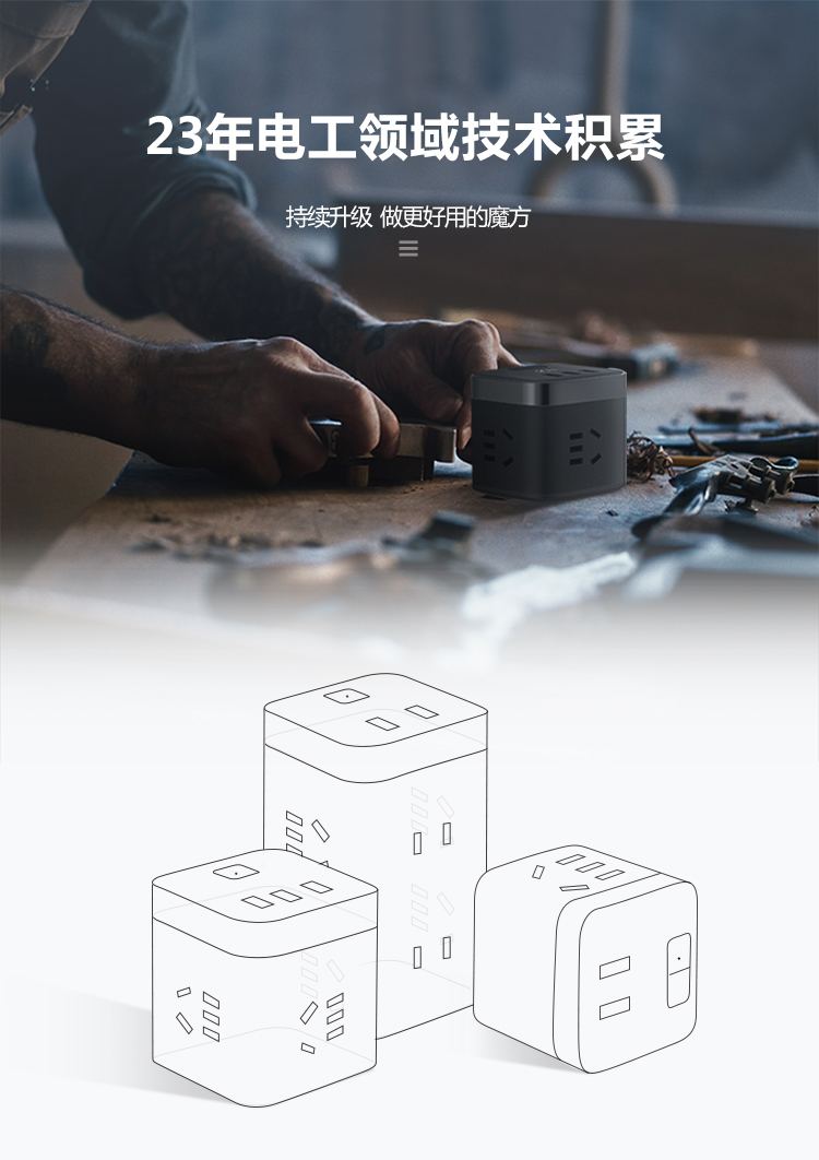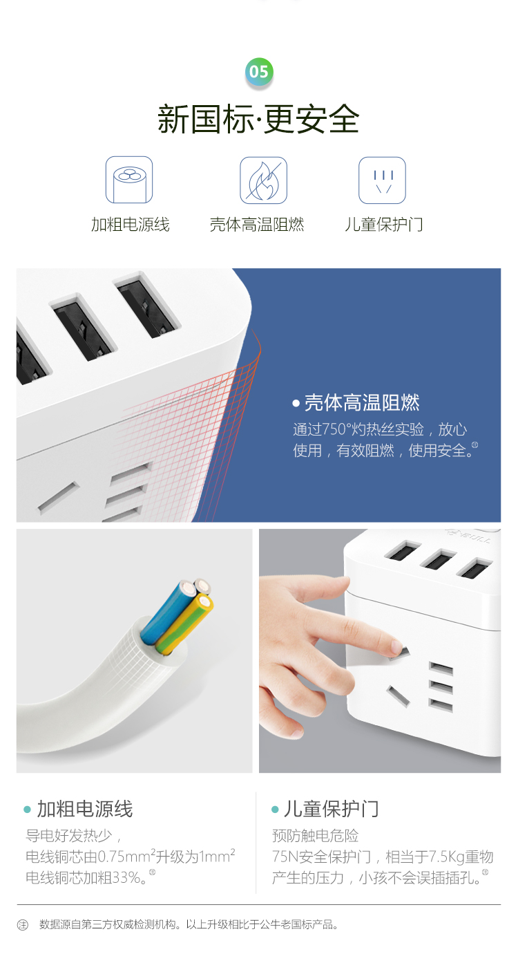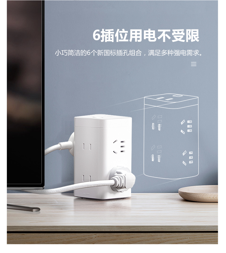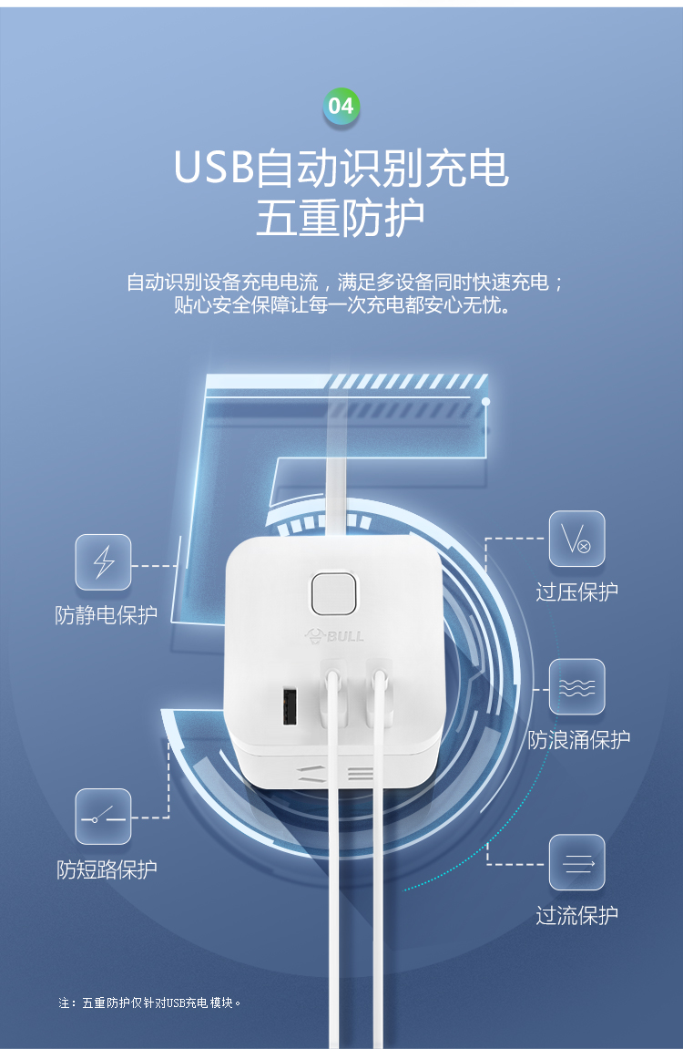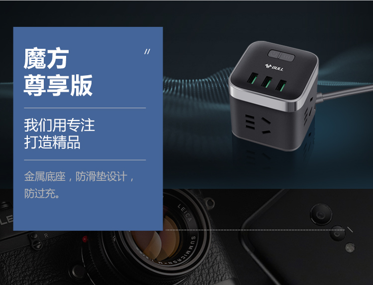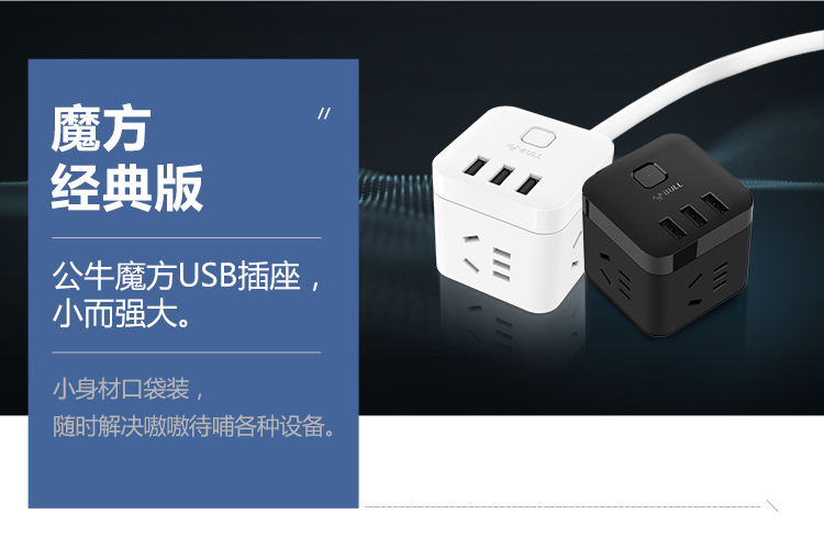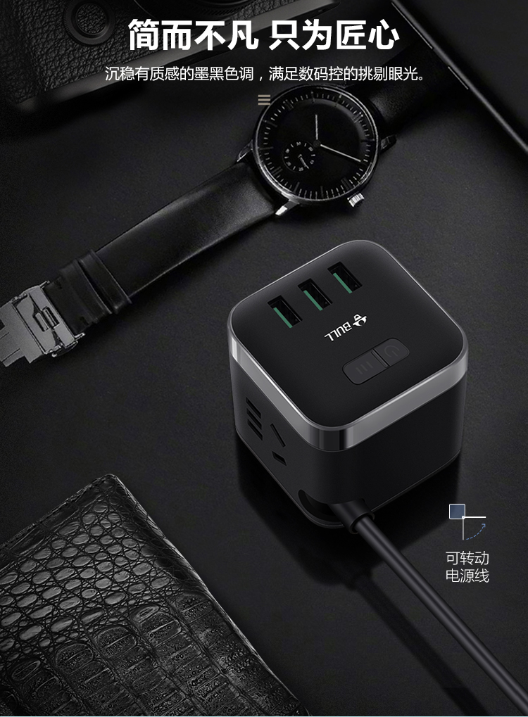 公牛(BULL)魔方USB插座 插线板/插排/排插/接线板/拖线板 3USB接口+3插孔全长3米 黑色 GN-U303H 个 黑色