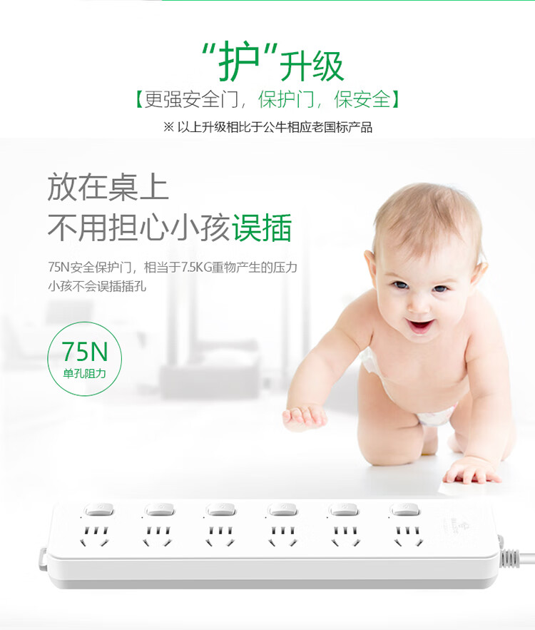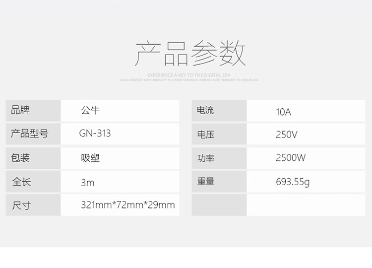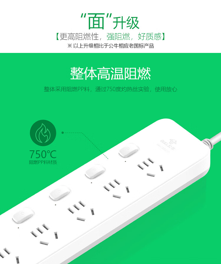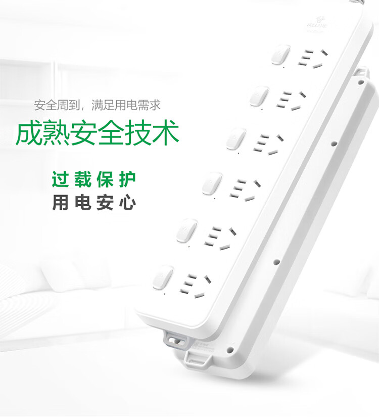 公牛(BULL)GN-313 插座/插线板/插排/排插/接线板/拖线板 6位分控全长3米 超功率保护插座 个 白色