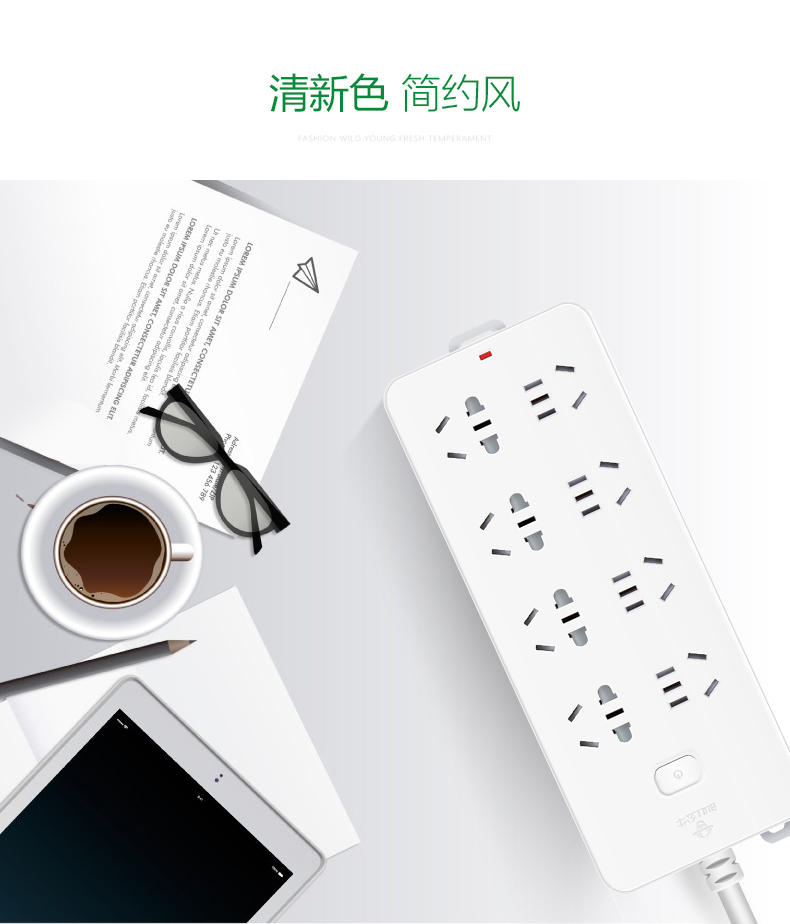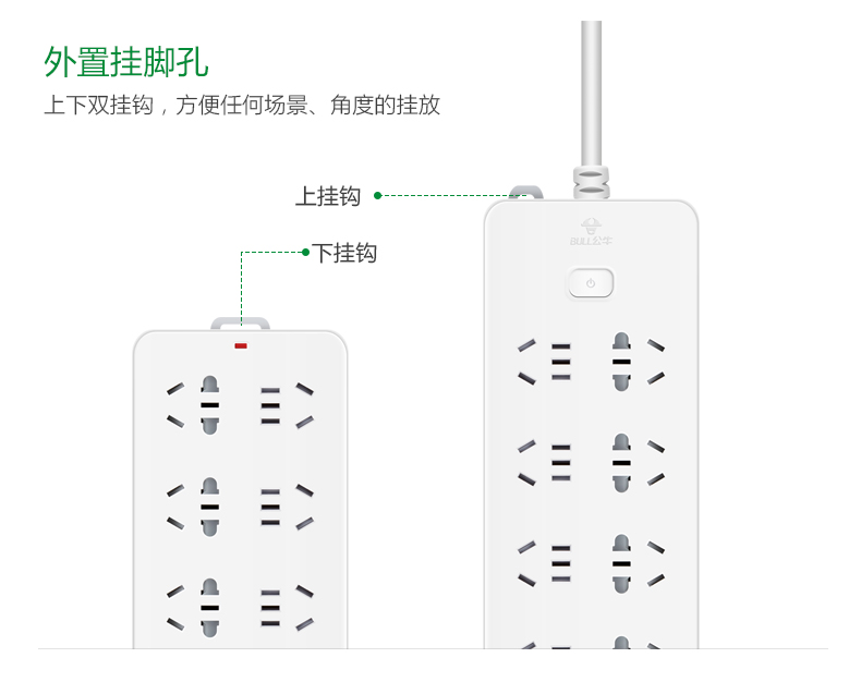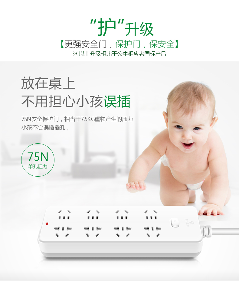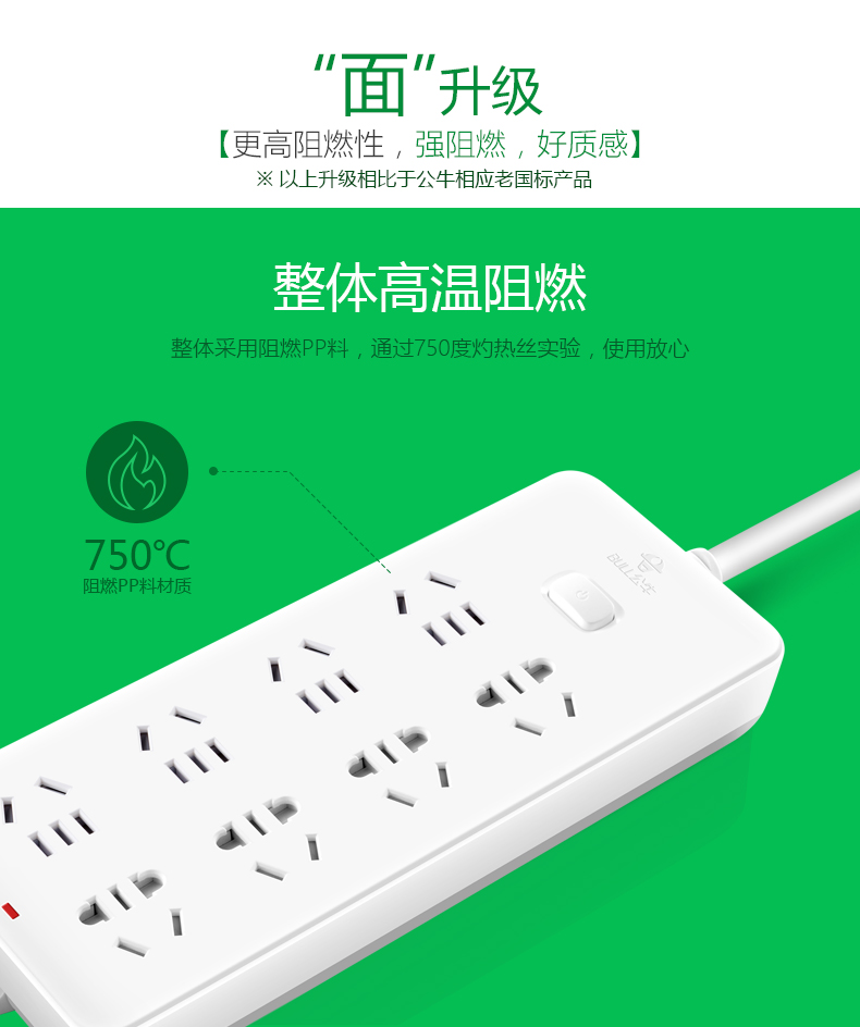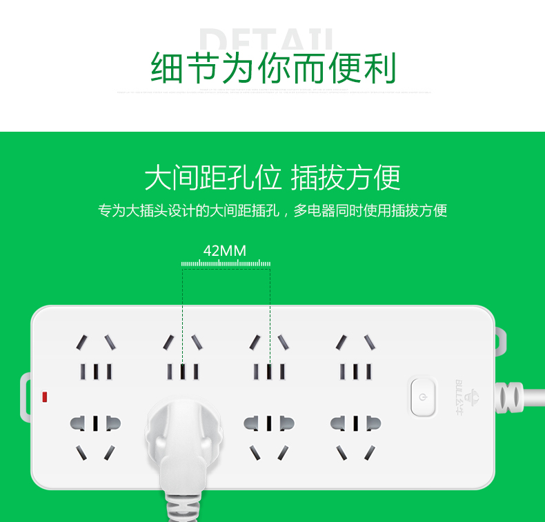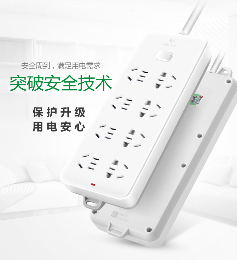 公牛(BULL) GN-218 新国标插座/插线板/插排/排插/接线板/拖线板过载保护 10插位5米 超功率保护 个 白色