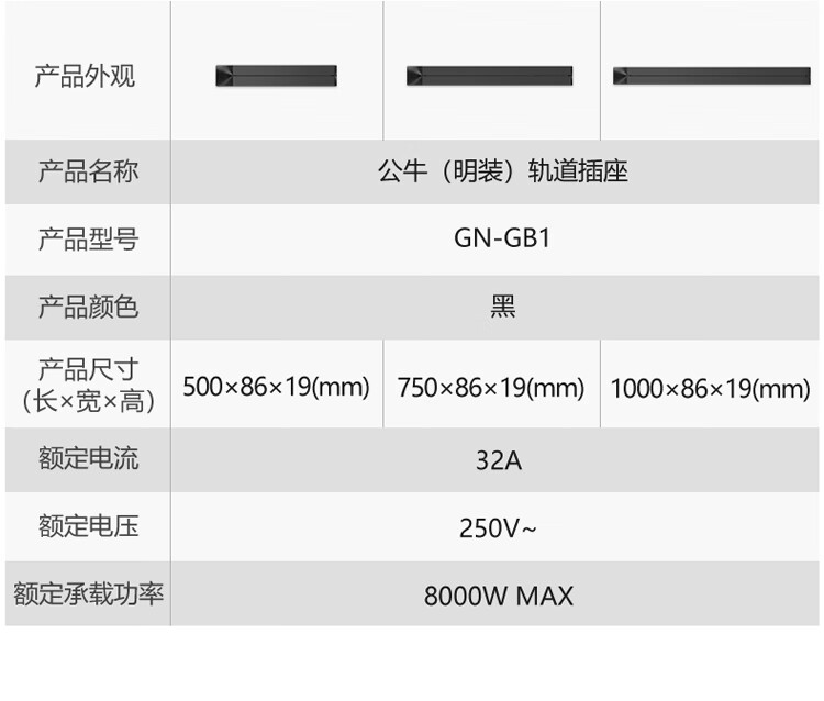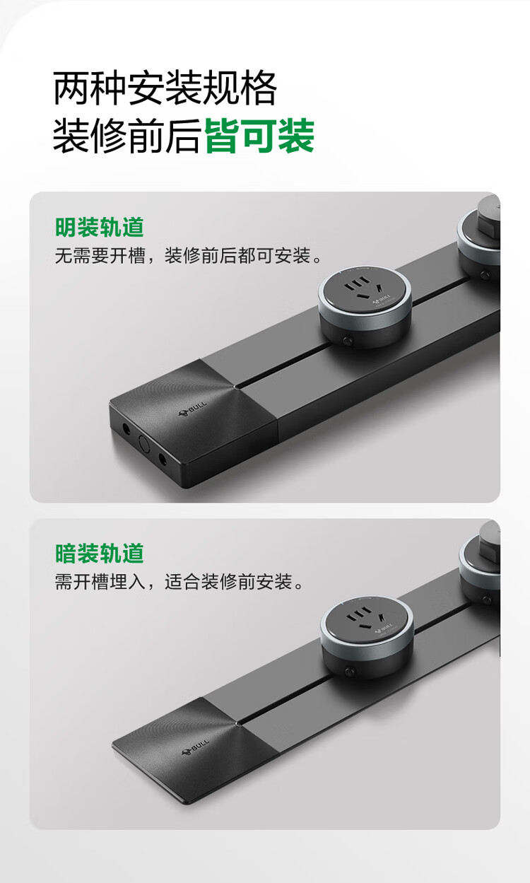 公牛(BULL)轨道插座 可移动墙壁插座壁挂式 多功能轨道插座明装 500mm+3个五孔插座 个 曜石黑