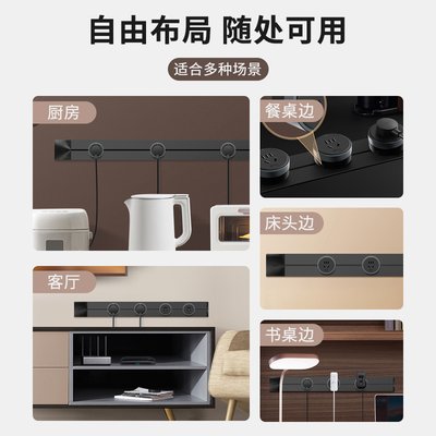 公牛(BULL)明装 轨道插座 可移动墙壁插座壁挂式 多功能免打孔 75mm轨道+4个五孔插座 个 曜石黑