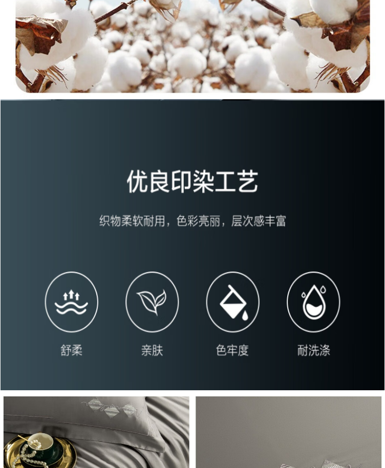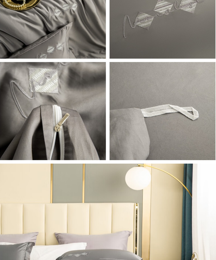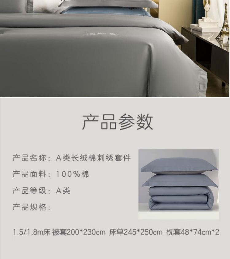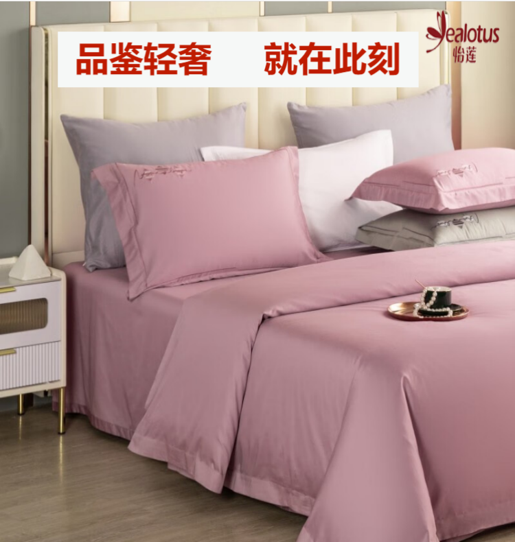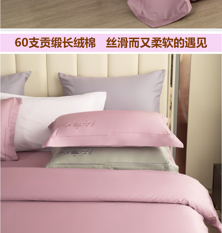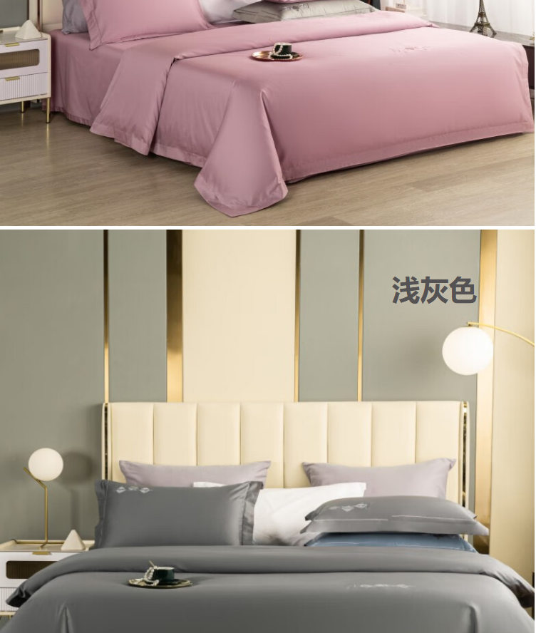 怡莲 60支优质长绒棉四件套简约高端素色四季通用双人床200*230CM(单位:套) 浅灰色