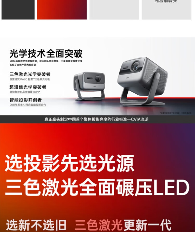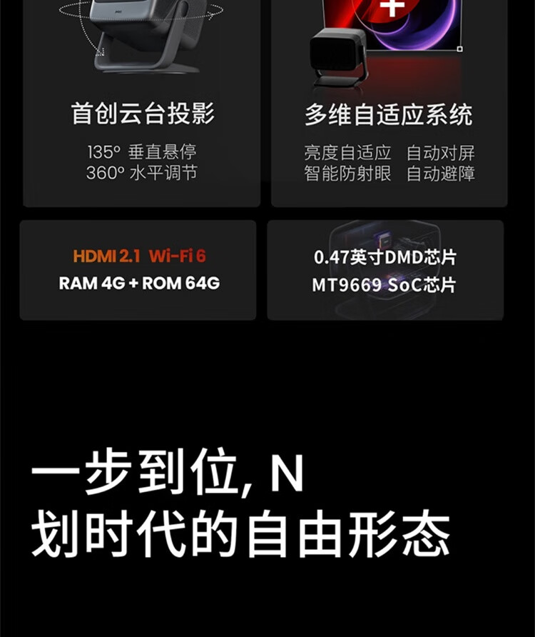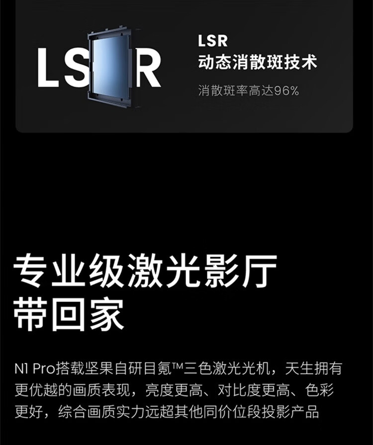 坚果(JMGO)N1S Pro 4K超高清三色激光 云台投影仪家用家庭影院白天投墙 单位:个 灰色