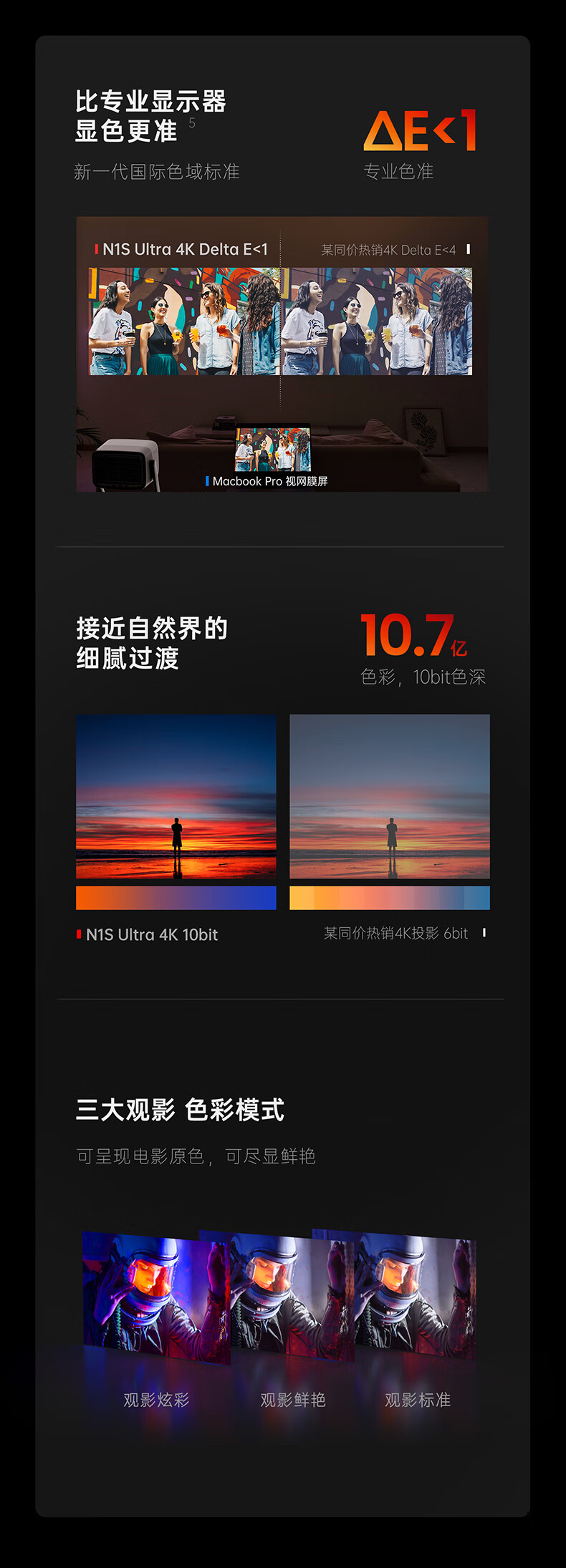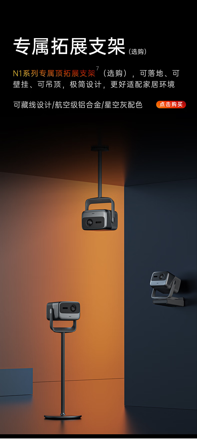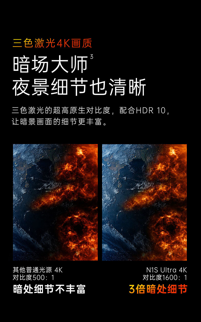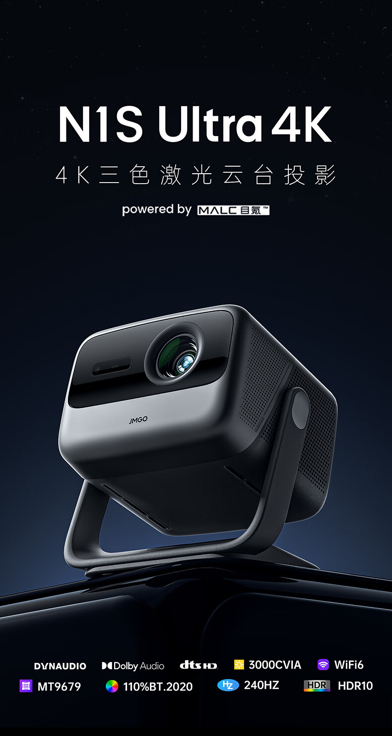 坚果(JMGO)N1S Ultra 4K三色激光云台投影 投影仪家用办公智能家庭影院3000CVIA 深灰色