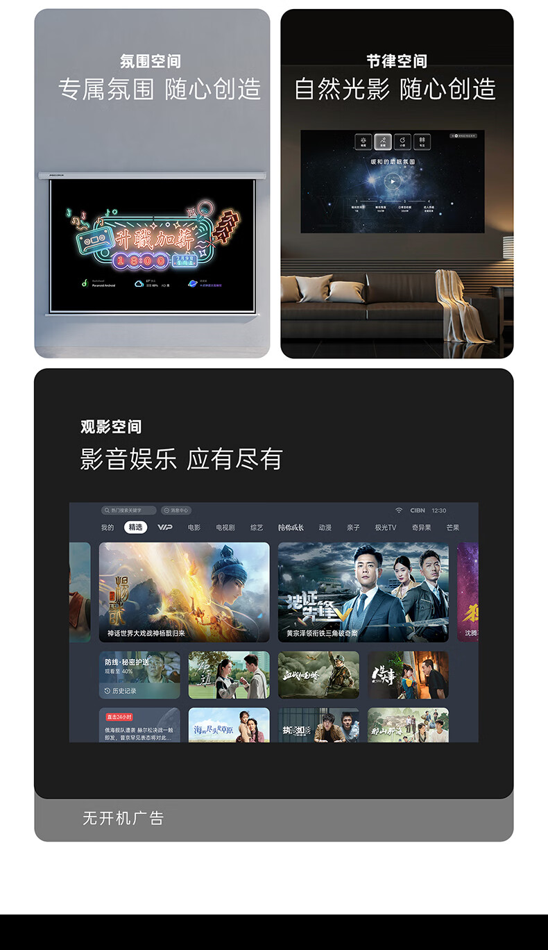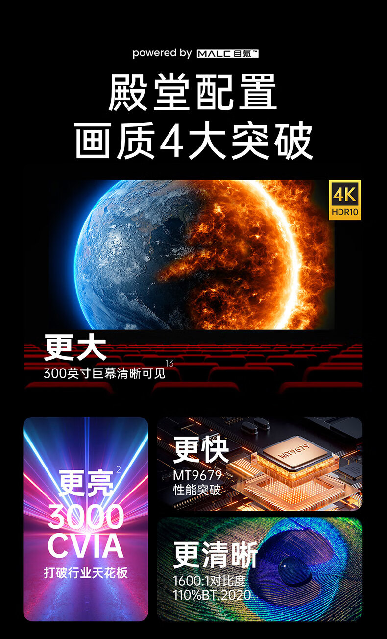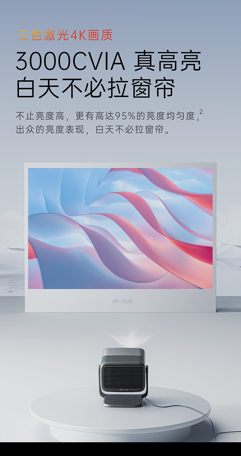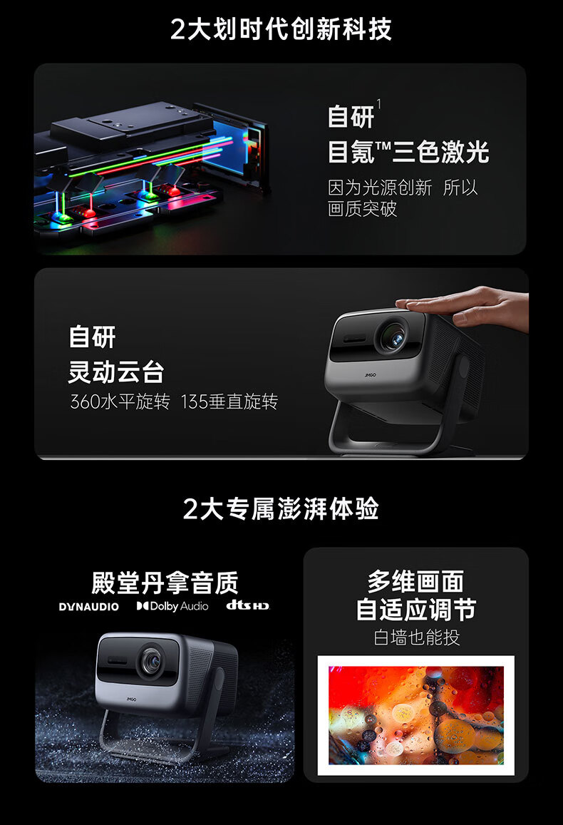 坚果(JMGO)N1S Ultra 4K三色激光云台投影 投影仪家用办公智能家庭影院3000CVIA 深灰色