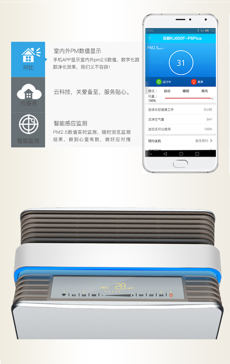 亚都(YADU)空气净化器除甲醛颗粒物甲醛分解无二次释放 家用 KJ650F-P6PLUS 单位:台 白色
