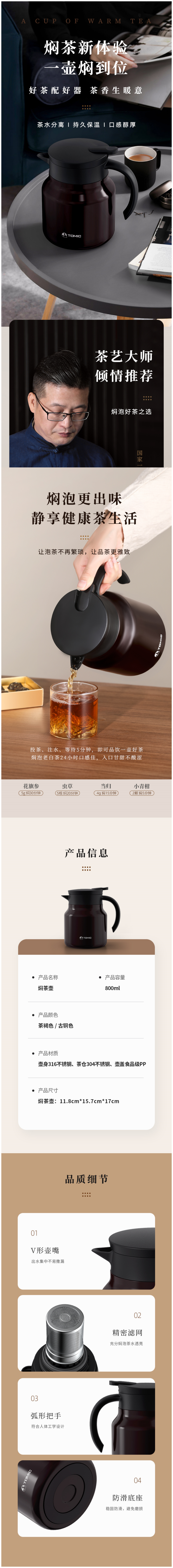 特美刻(TOMIC)焖茶壶防粘内胆闷泡壶大容量316茶隔泡茶壶 TJ70020AF 单位:个 咖啡色