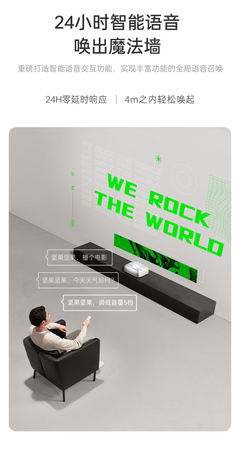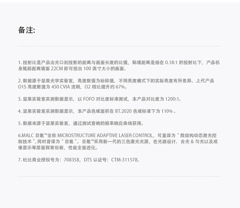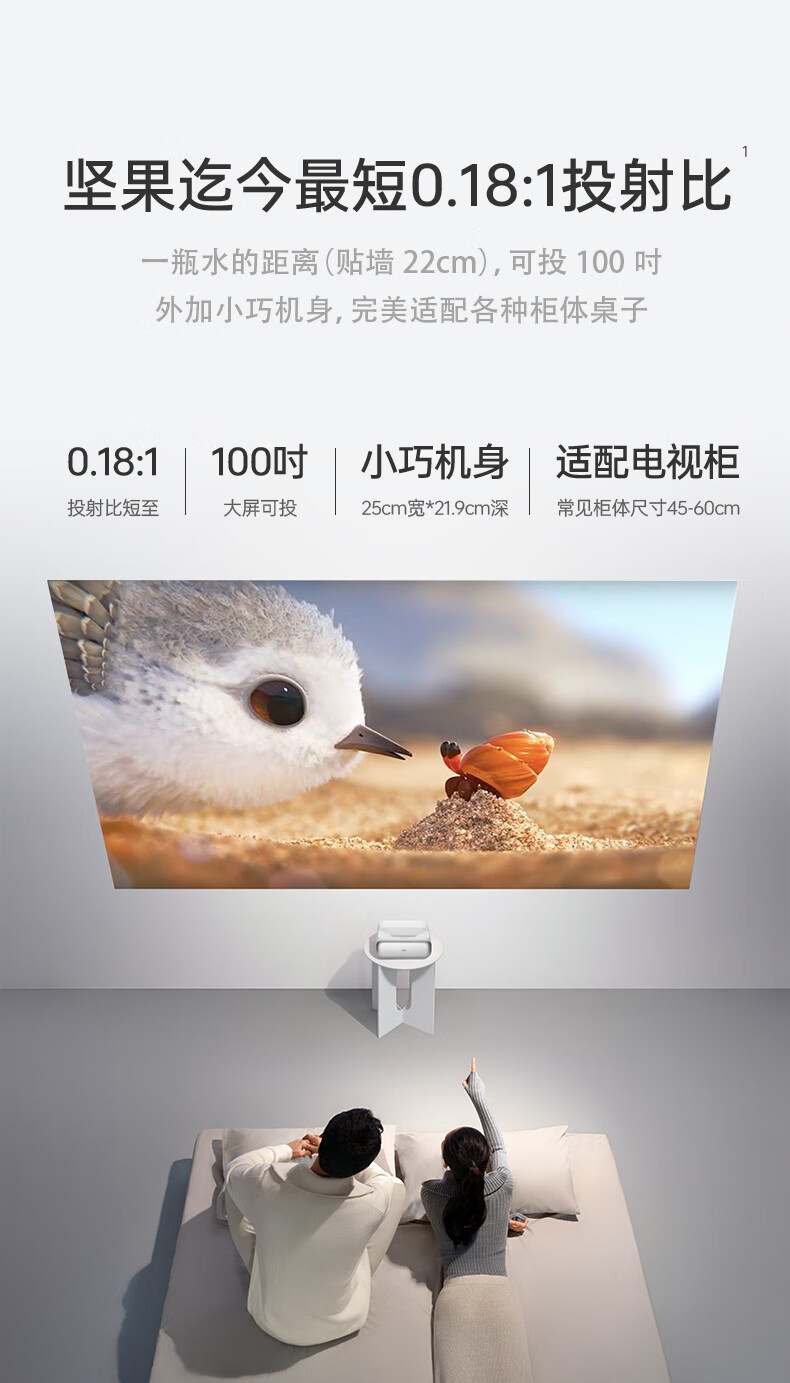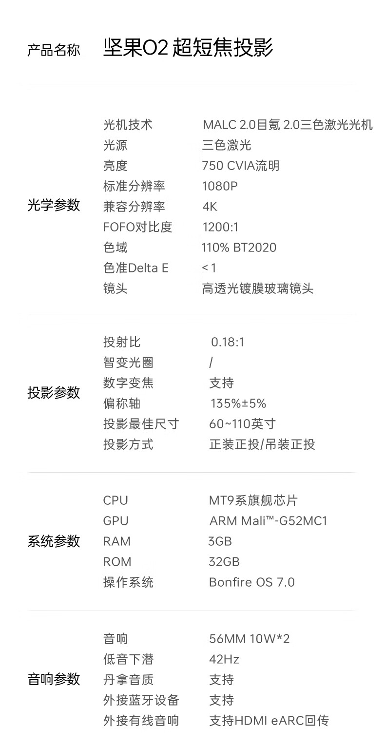 坚果(JMGO)O2三色激光短焦投影仪家庭影院白天投墙(离墙23.8cm投百吋 激光电视) O2三色 白色