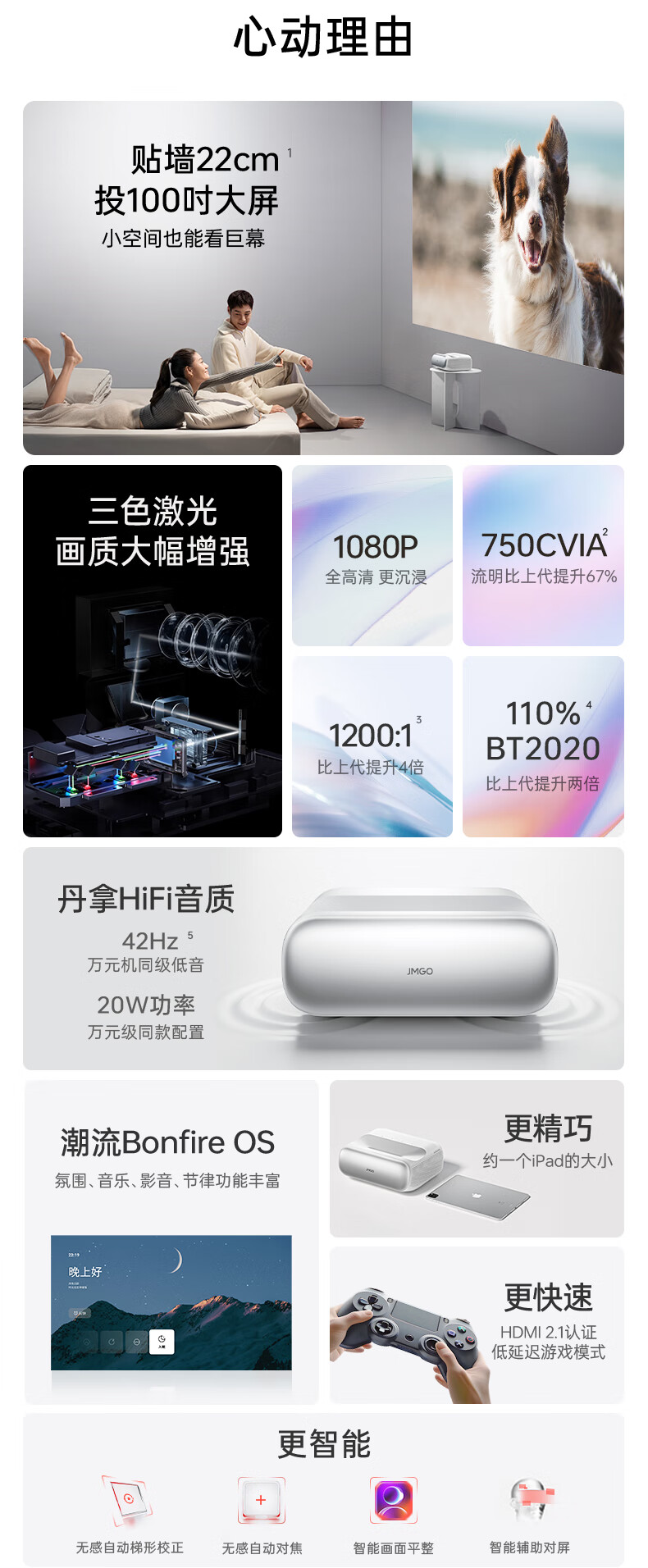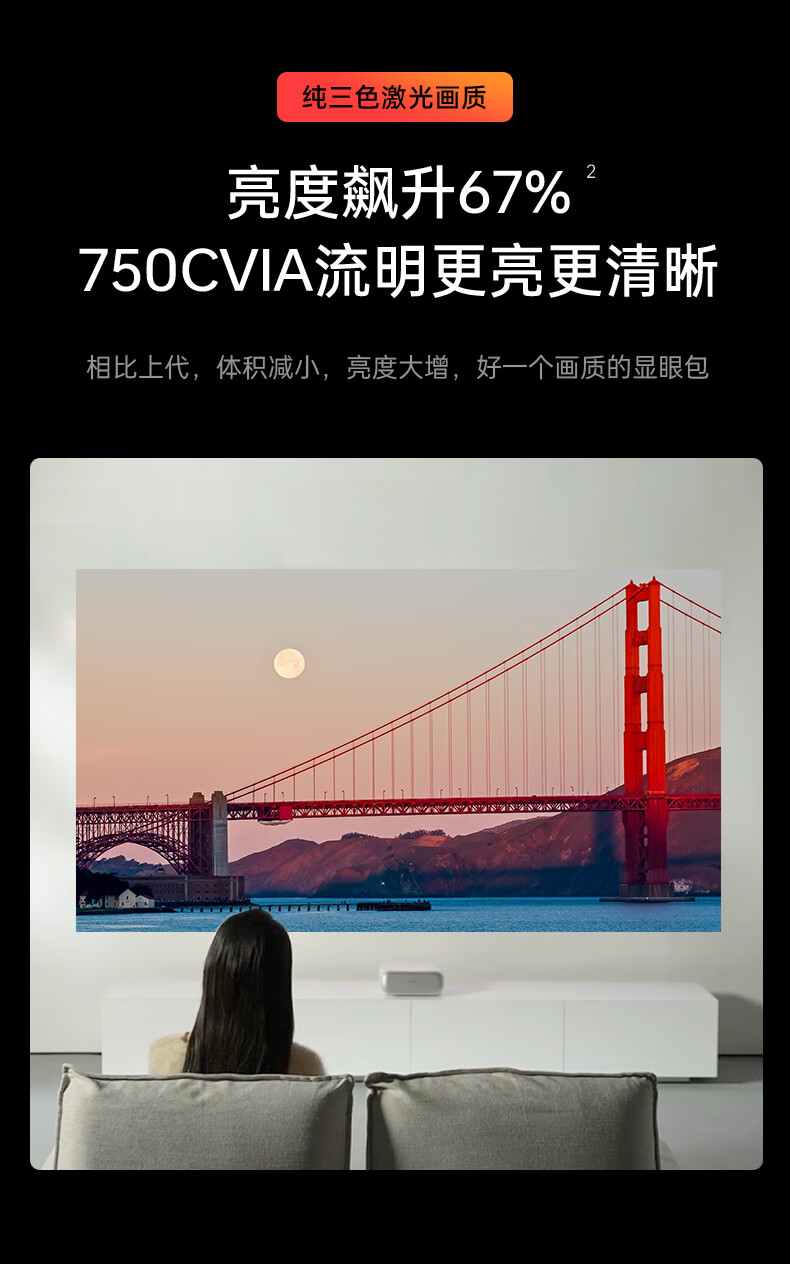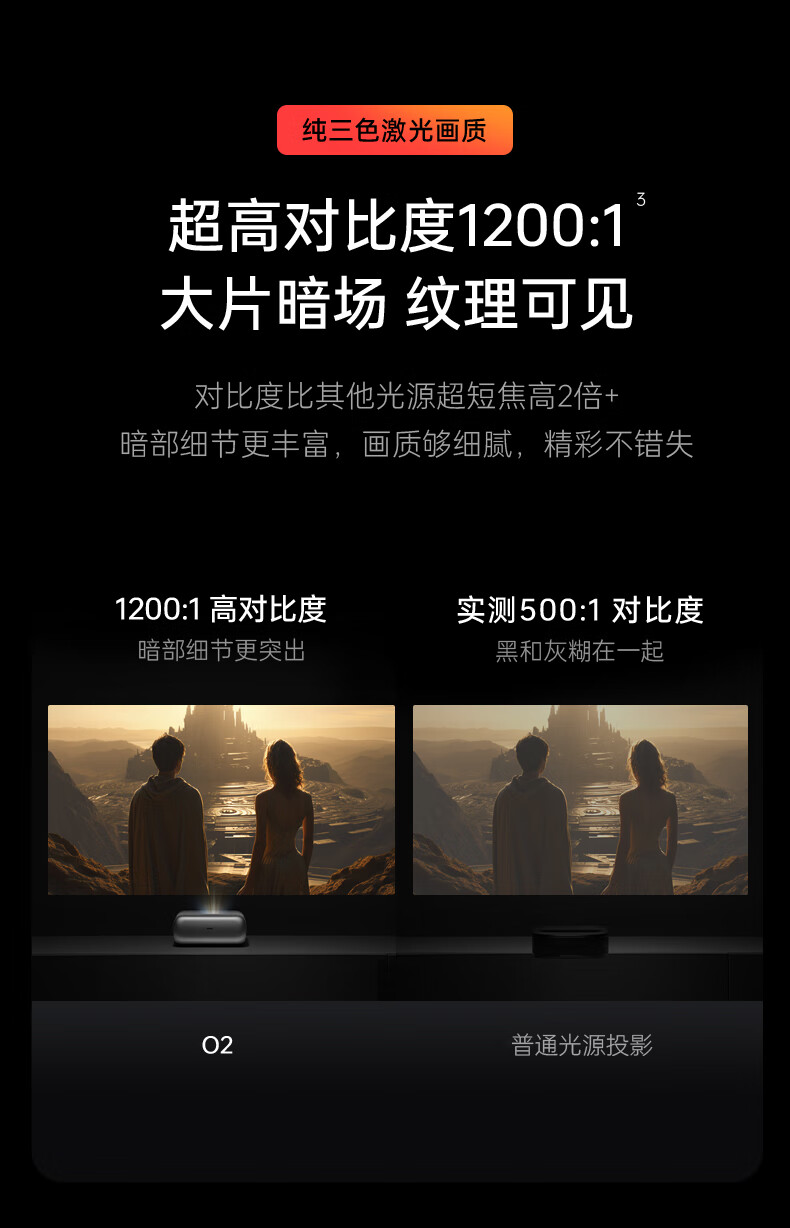 坚果(JMGO)O2三色激光短焦投影仪家庭影院白天投墙(离墙23.8cm投百吋 激光电视) O2三色 白色