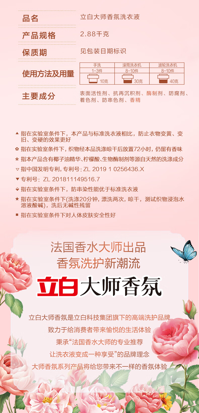 立白 大师香氛洗衣液2.88kg 单位:瓶 粉色