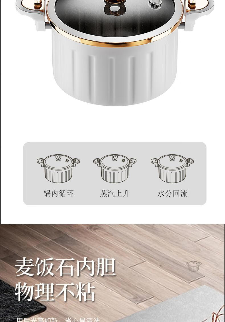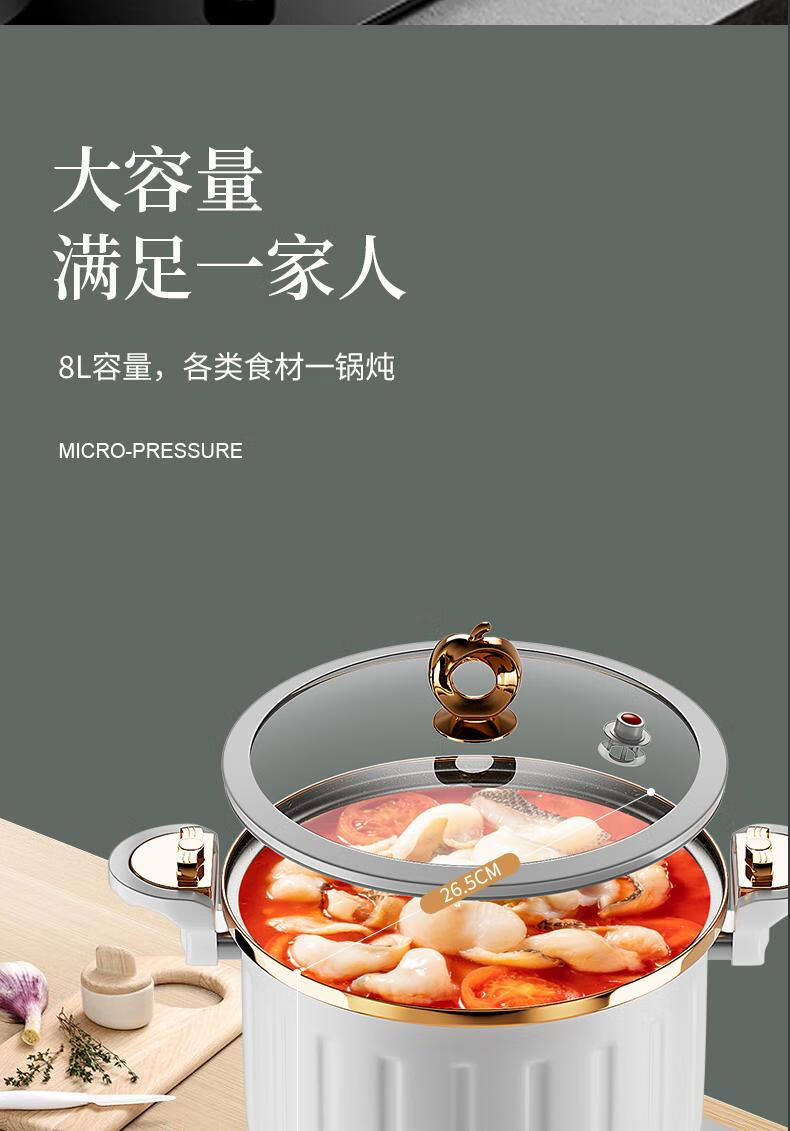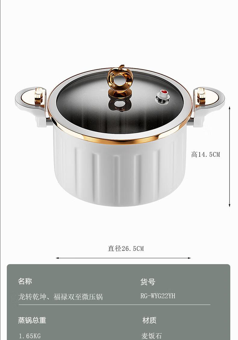 荣事达(Royalstar) 龙转乾坤福禄双至微压锅 RG-WYG22YH 8L 白色(单位:个)