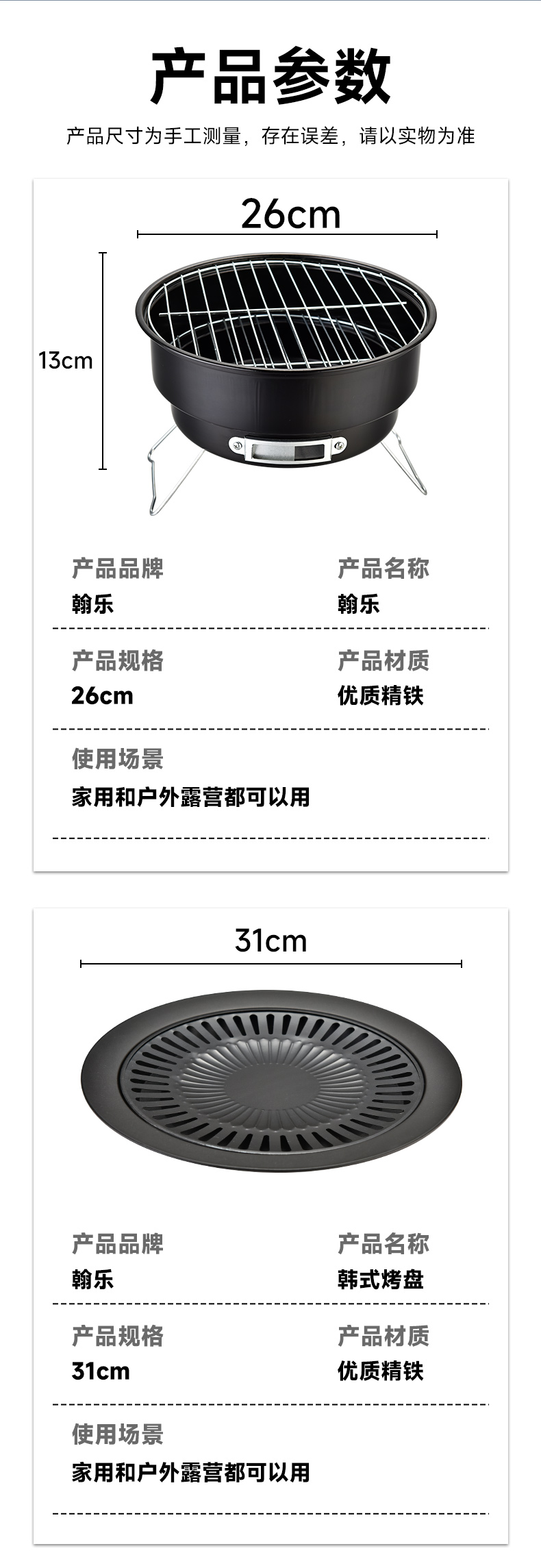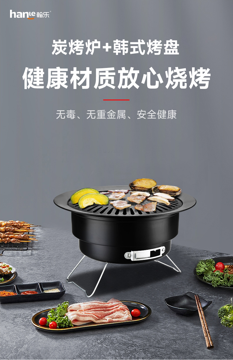 翰乐炭烤炉+韩式烤盘HL-BBQ01 26CM(套) 黑色