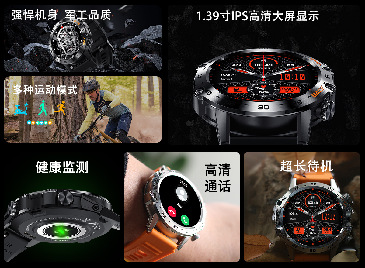 LIGE 利格 硬核科技运动通话手表BW1846C黑色硅胶带含有硅胶带(单位:台) BW1846C黑色硅胶带含有硅胶带