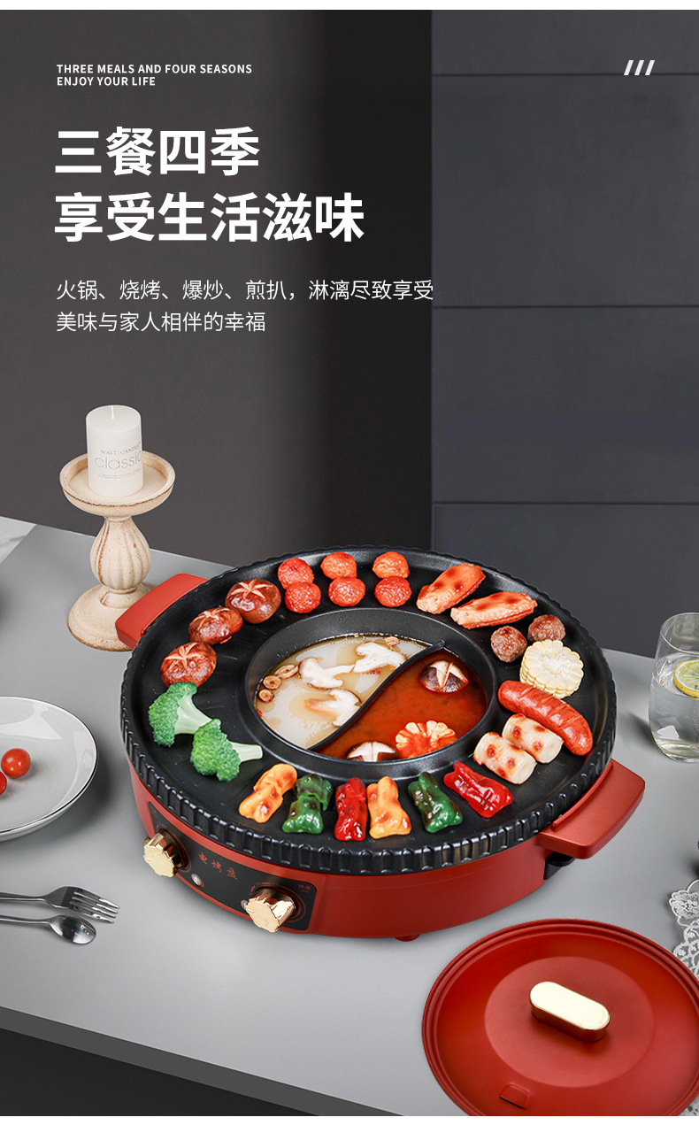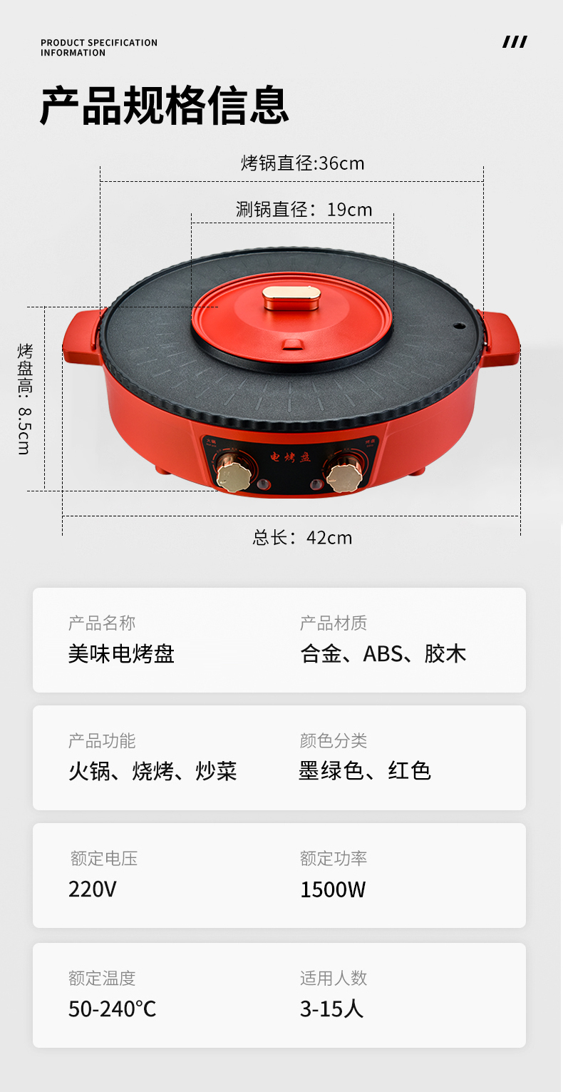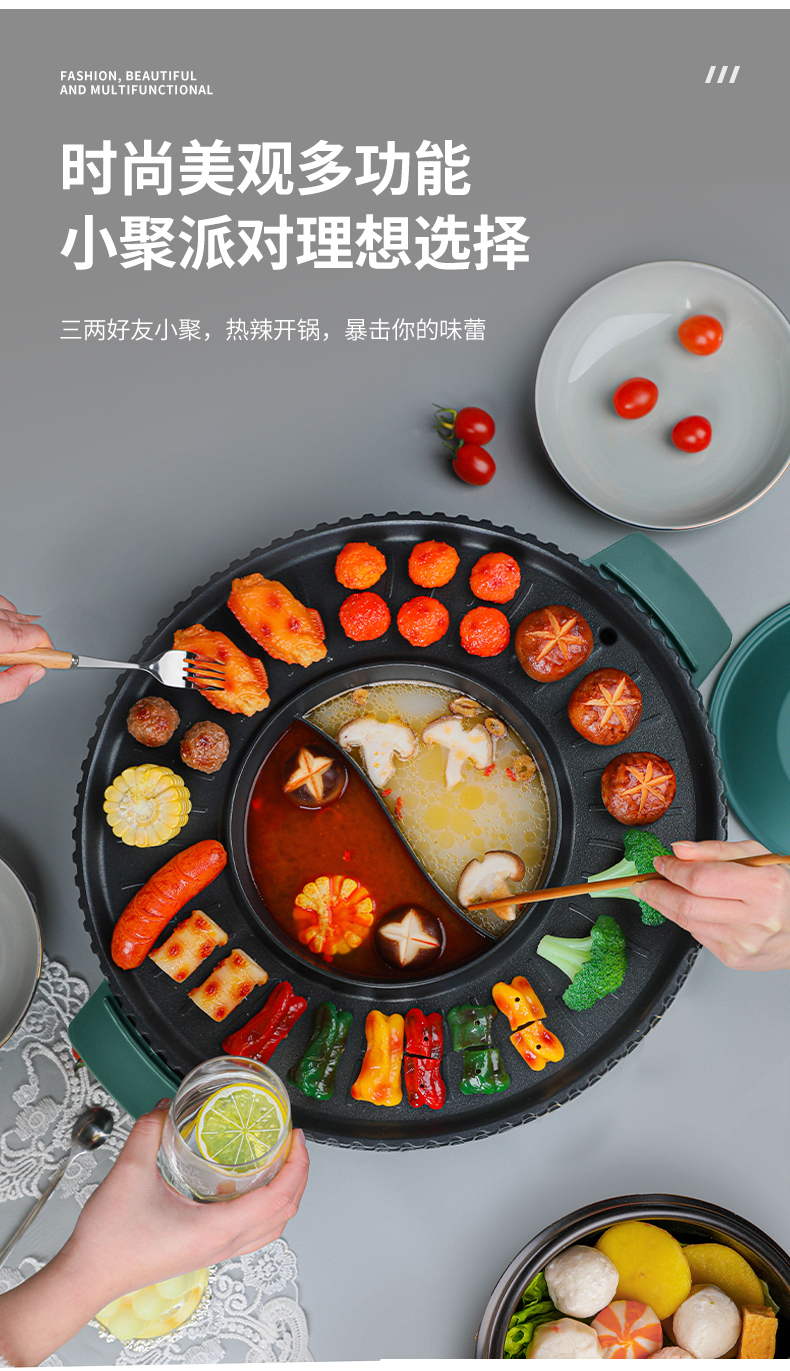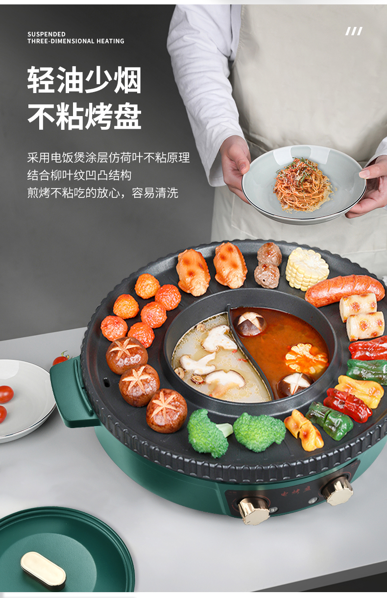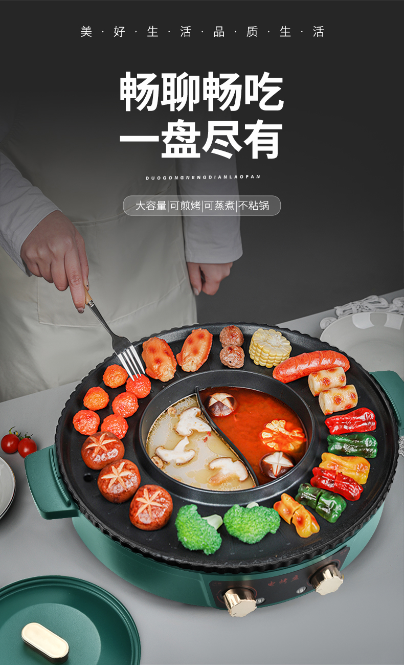 翰乐YP-K8008美味电烤盘36cm(套) 绿色