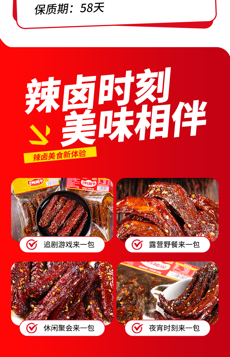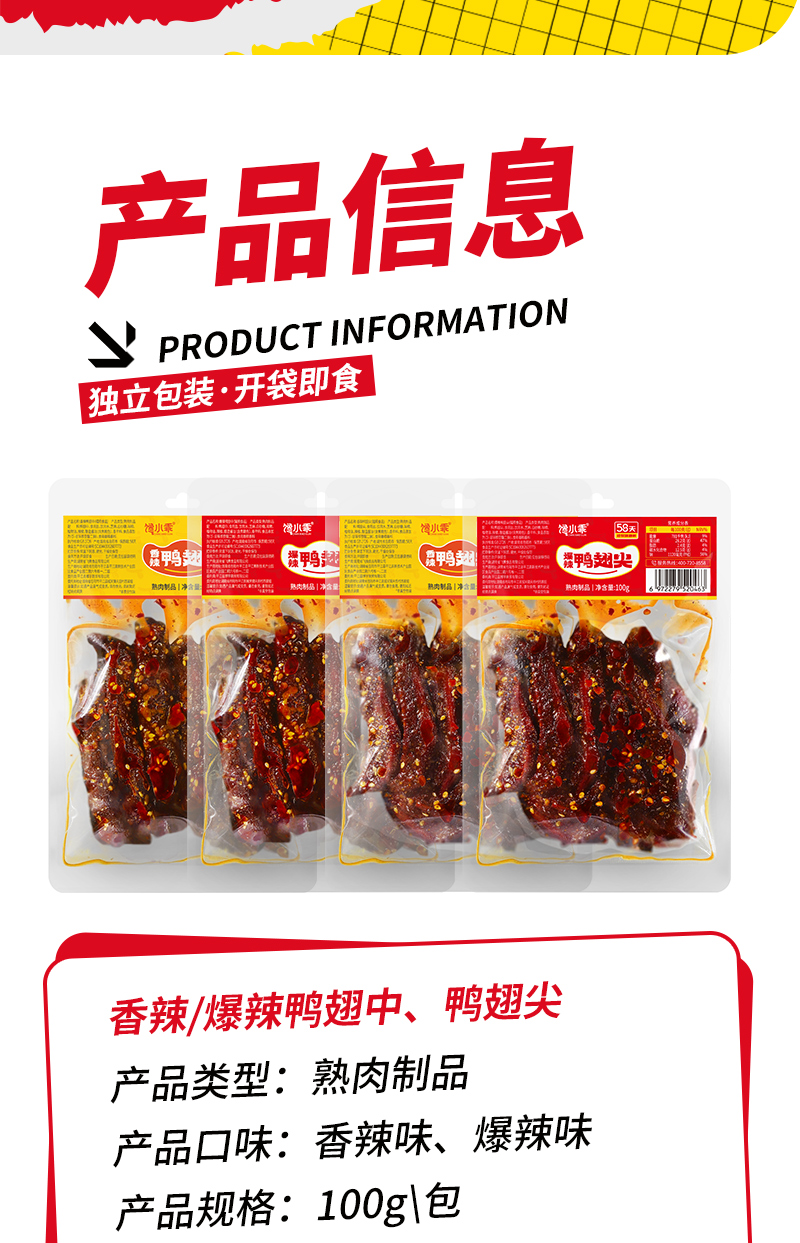 馋小乖香辣鸭翅尖 香辣味 4包 100g*4 单位:包 黄色
