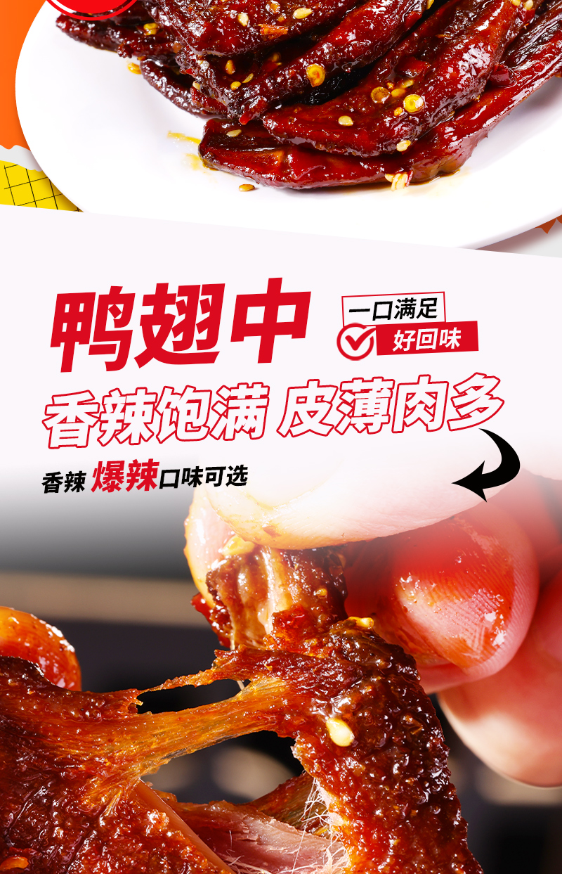 馋小乖香辣鸭翅中 香辣味 4包 100g*4 单位:包 黄色